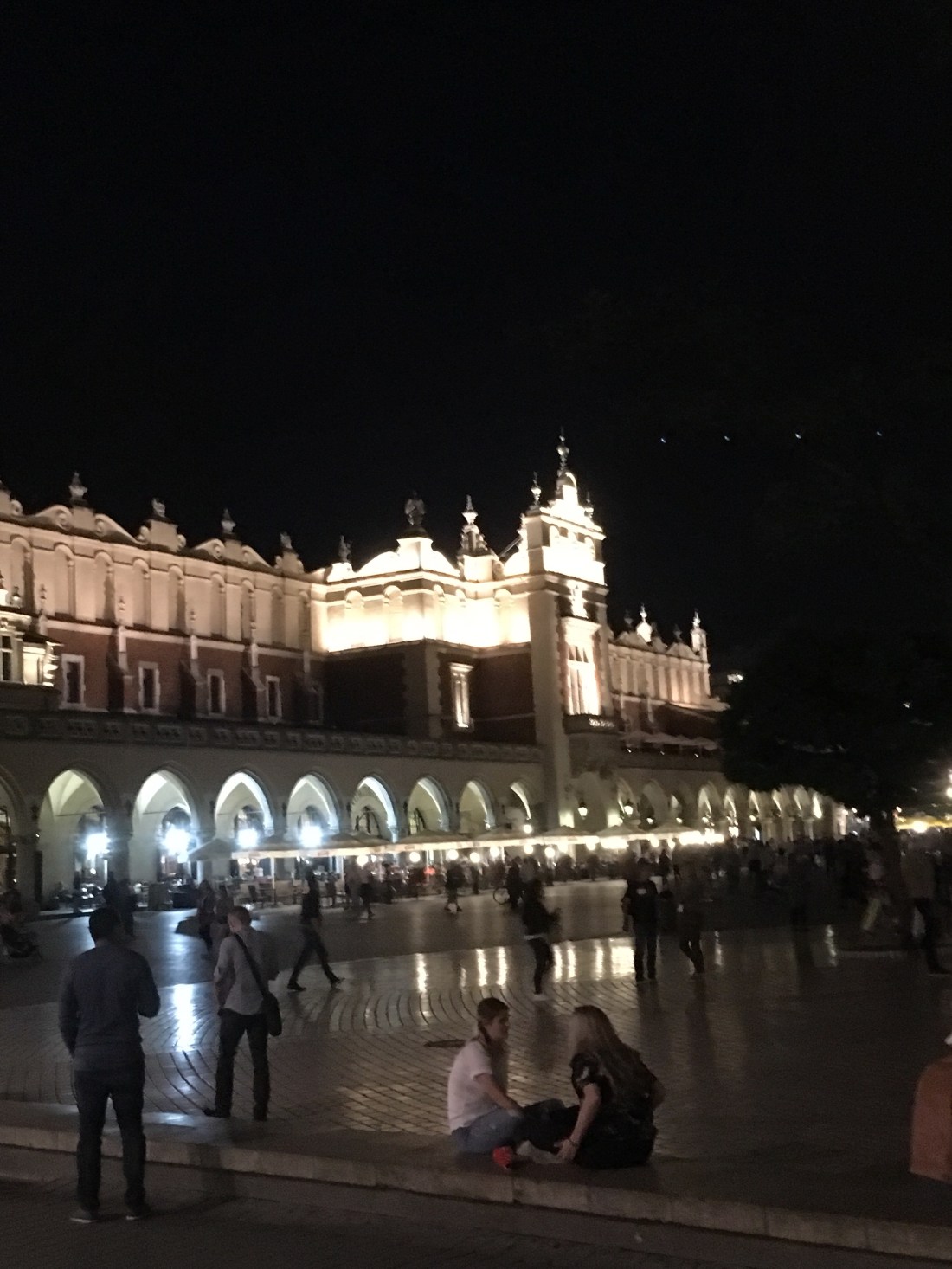 This is the town square in old town Krakow. It is a very lively place day and night.