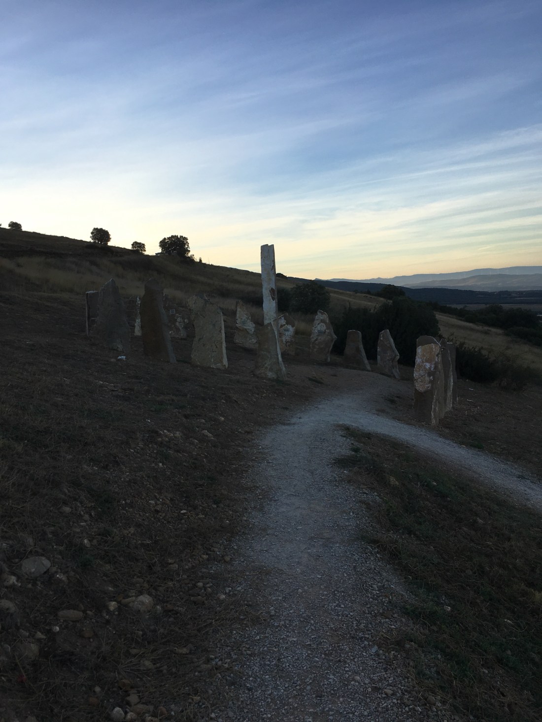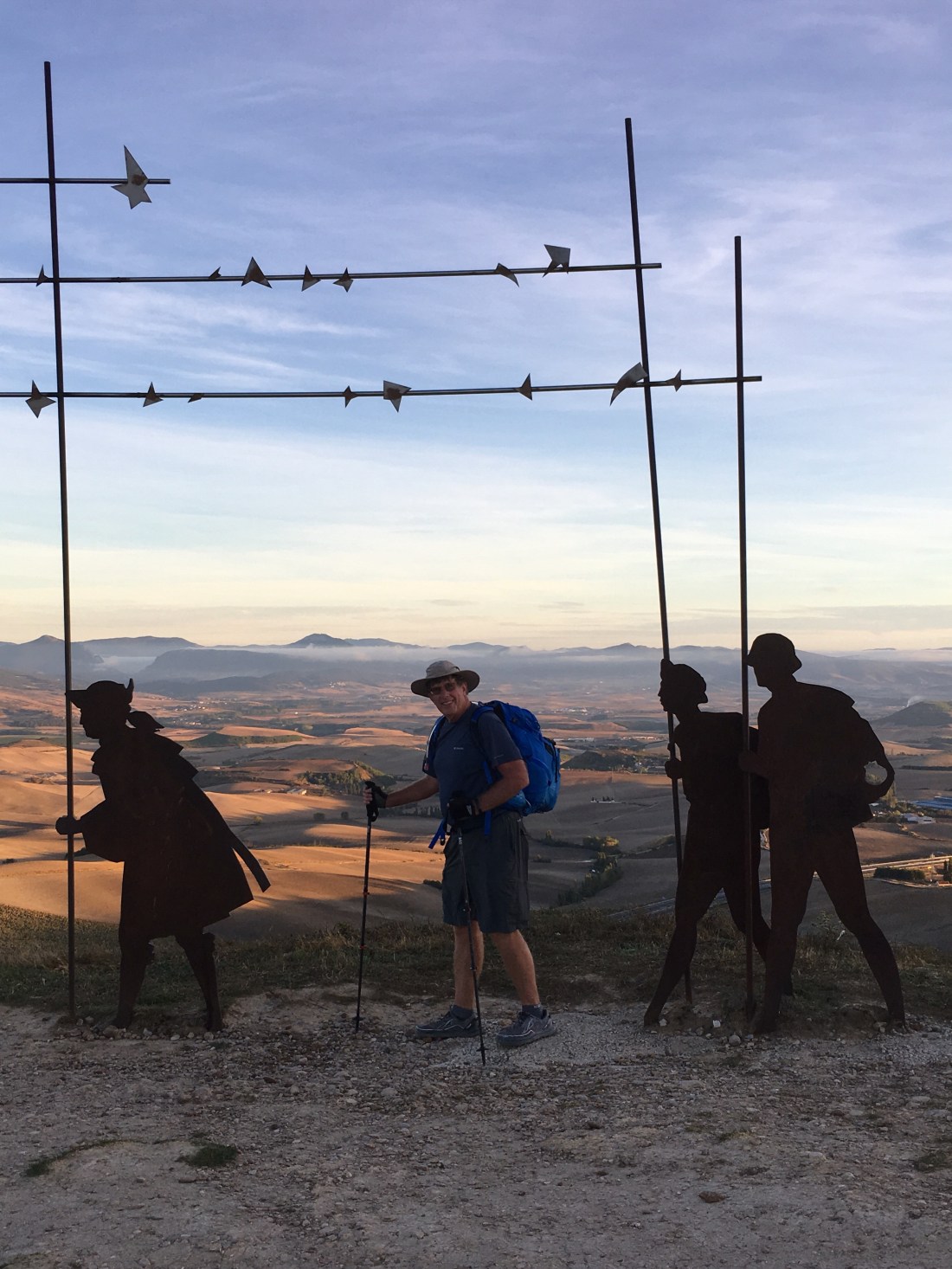 This is Alto del Perdon, a notable landmark on the Camino. We arrived there at a little after sunrise, about 8:00 AM.