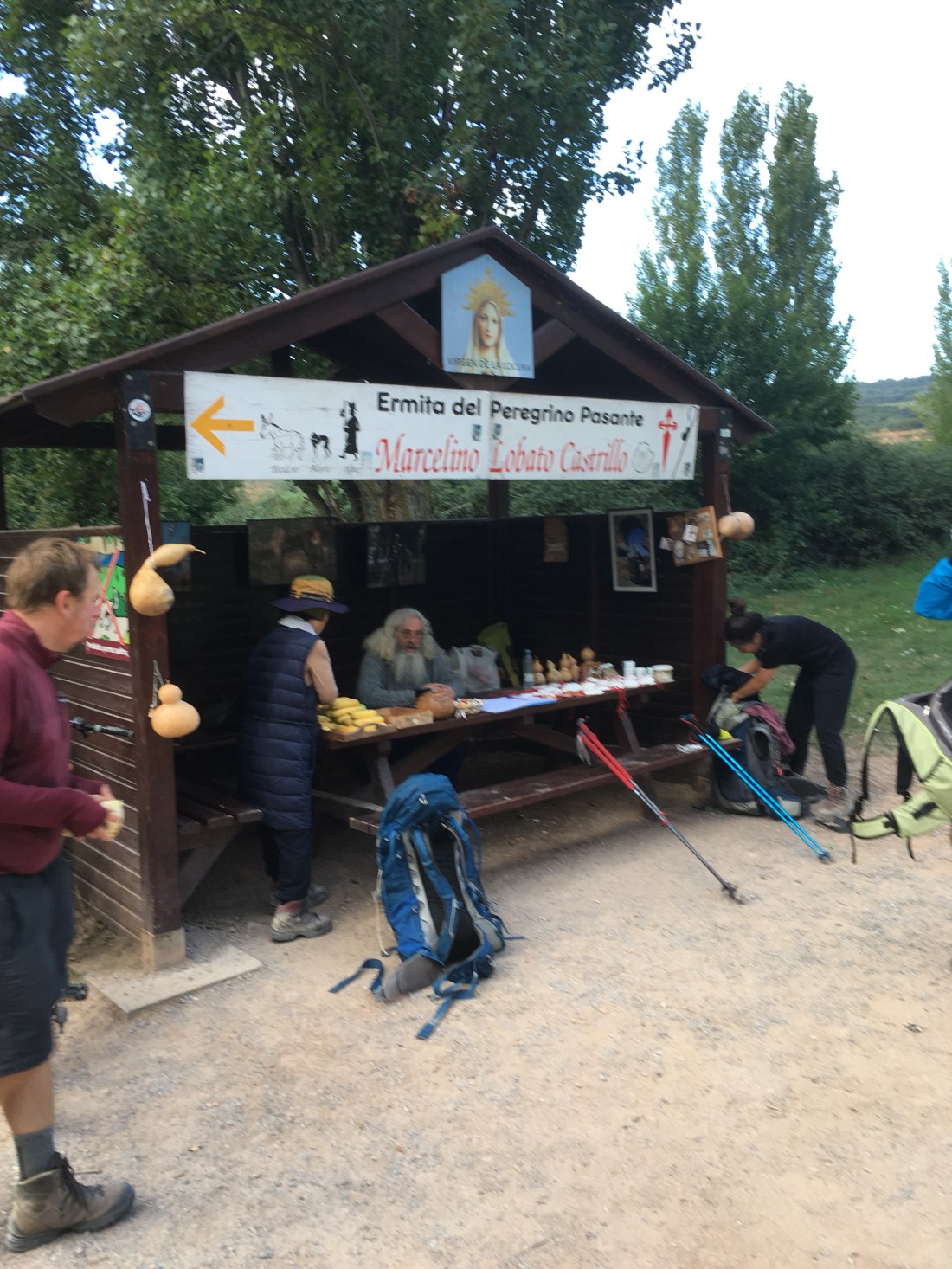 This is a shrine on the side of the Camino in one of the vineyards. We stopped and said a prayer for Anna. Notice the animal to the saint’s left, on the right hand side of the picture. Yep, it’s a cow, a beef cow 🥩, not a dairy 🥛 cow. The Spaniards in this neck of the woods have a patron saint for beef cows but they are trying to tell me there is no beef for me or any other Pilgrim. I am getting real tired of this “hide the beef” game the Spanish are playing. Do I need to interrupt my Camino and fly to Texas to get a steak 🥩 and a loaded baked potato 🥔? I have one question for you wiley Spaniards, “Where’s the Beef?”