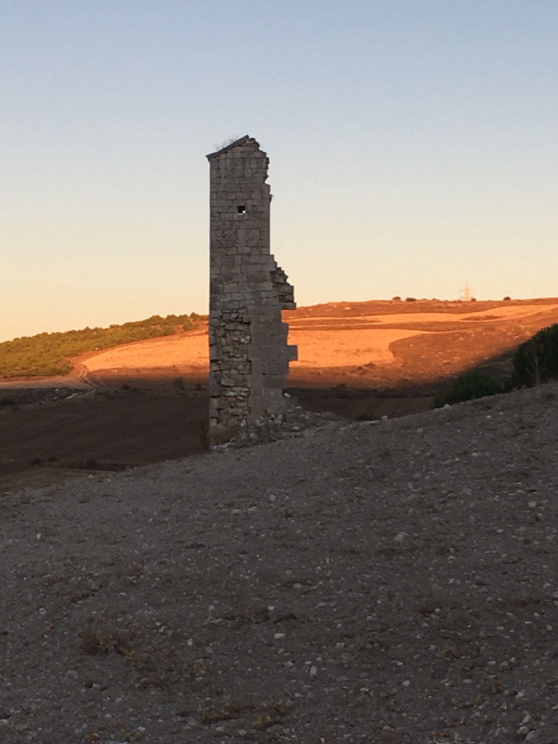 This is what is left of an ancient flour mill about 1 kilometer outside Hontanas, looking west, as the sun rises in the east, where the sun usually rises.