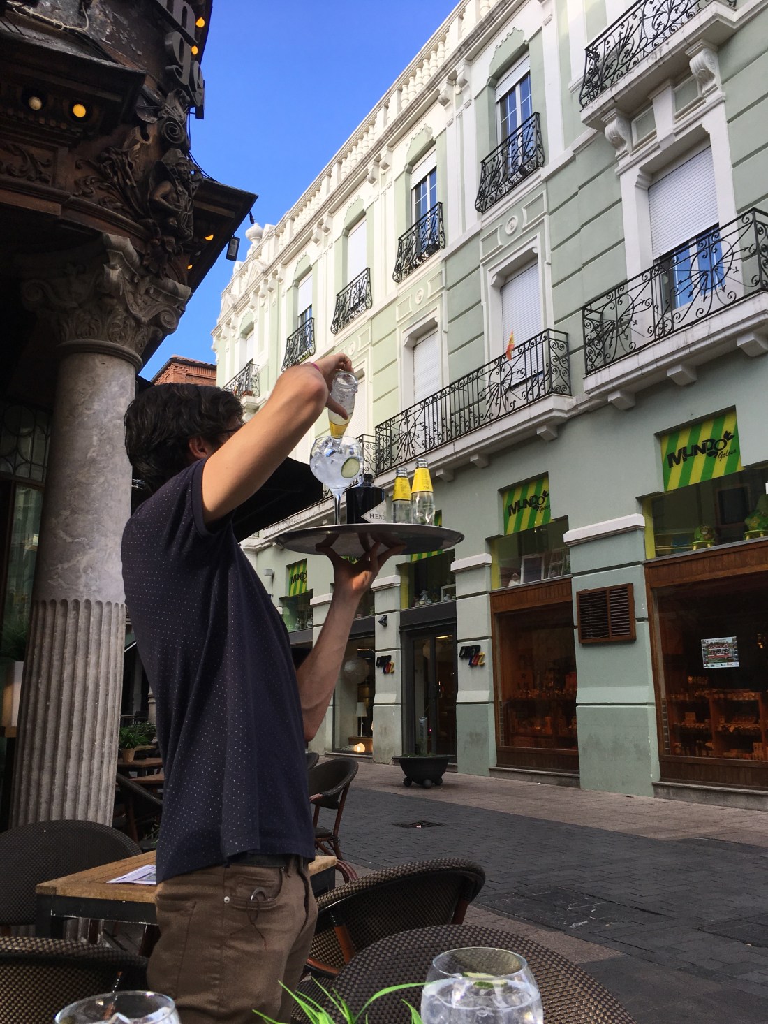 After we lit the candles and held a prayer service for Anna, complete with some good old time gospel music, I needed a drink. This is how they make a gin and tonic at your table on the Cathedral Square in Leon. It is quite a show.