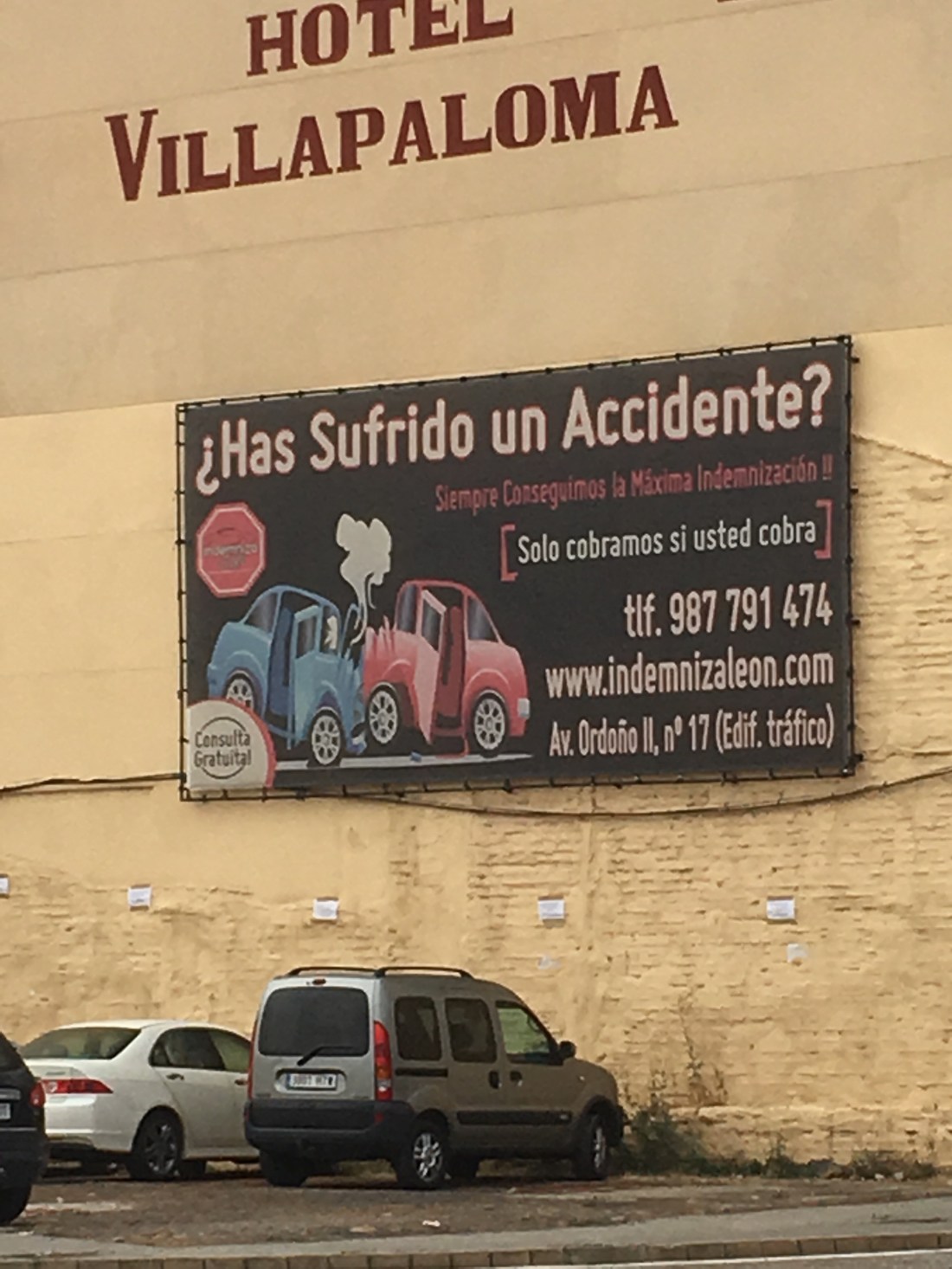 Speaking of slithering, this Plaintiffs’ attorney had a small sign in downtown Leon and this big billboard in Trabajo Del Camino. He seems to be the Frank “The Strong Arm” Azar of Spain.