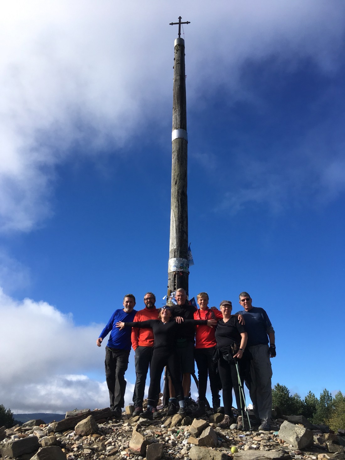 This is a shot of the Camino Family at Cruz de Ferro. From left to right, Giorgio from Italy now living in Canada, Marco from Italy, Kim from Denmark, Oliver from Denmark, Tina from Denmark and your humble correspondent.