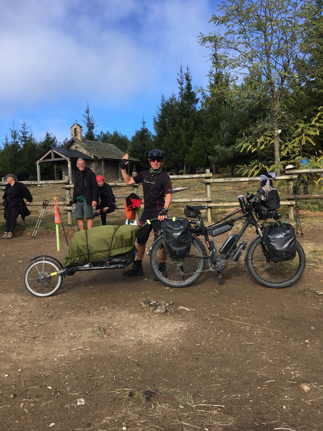 This is an Italian who is riding this crazy bicycle from Rome to Santiago. He has a boom box attached to the bike and is playing music from the Clint Eastwood spaghetti westerns as he pedals along the Way. I am sure this would make Clint Eastwood’s day.