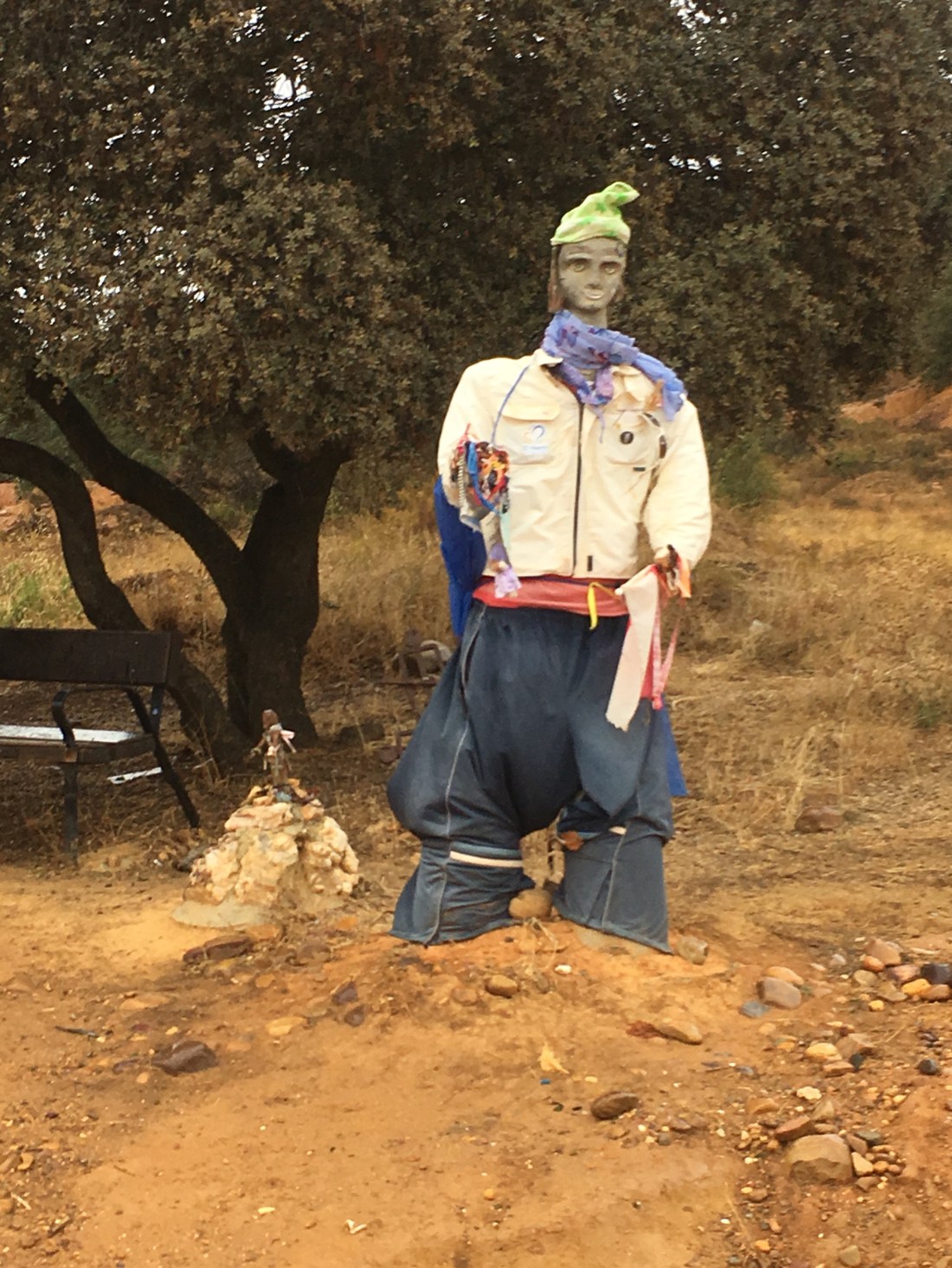 As we were walking along the Way there was a roadside rest area where this pilgrim stands at attention, welcoming all weary pilgrims to sit, take off their boots and give their feet a rest.