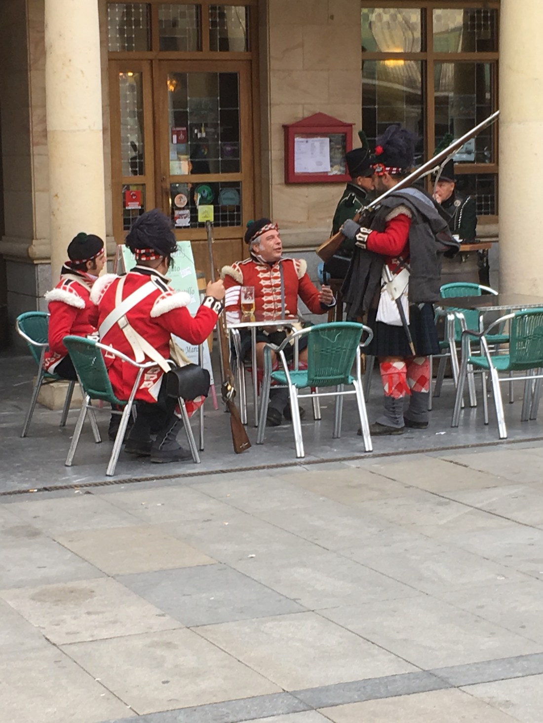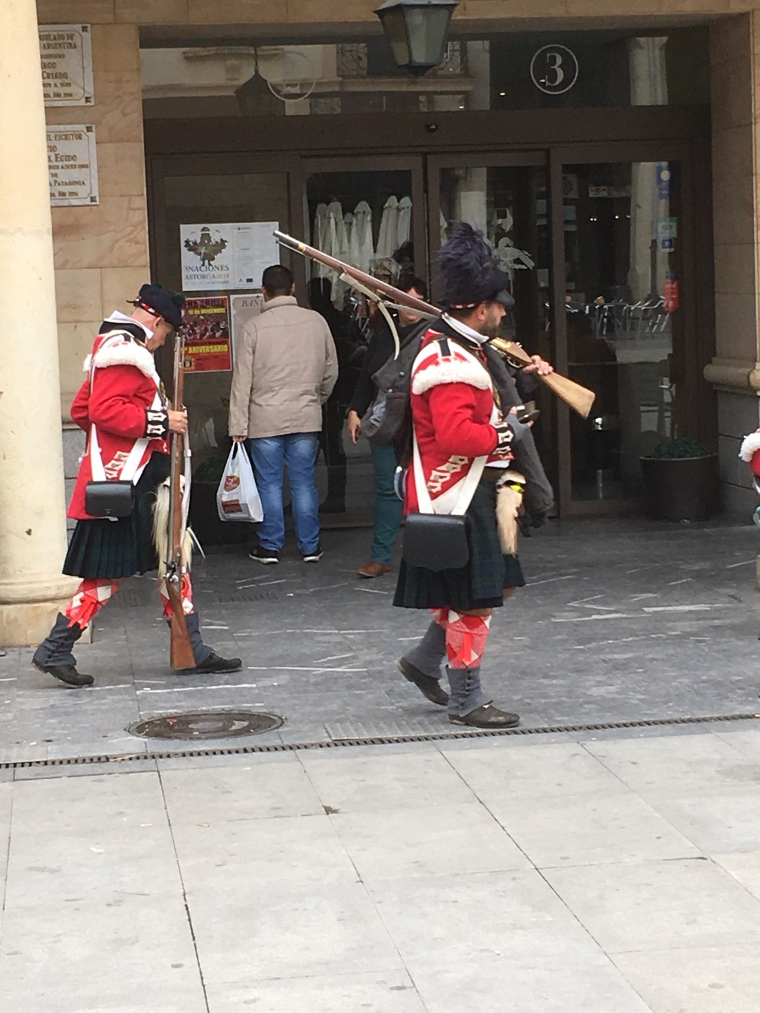 There is some kind of battle re-enactment going on in Astorga. Everyone is running around in period costumes with muskets and cartridge boxes.