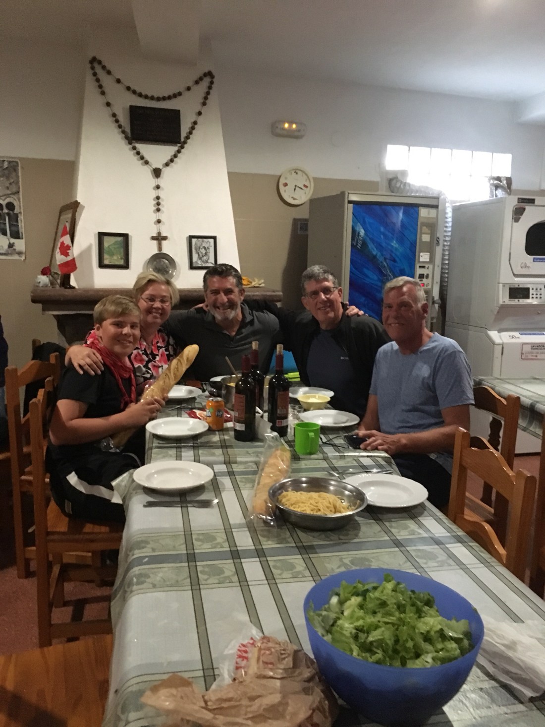 This is a picture of the now depleted Camino family having dinner at the alburgue. We had pasta carbonara, red wine🍷, fresh bread 🥖 and ice cream for dessert. It was a feast fit for nobility.