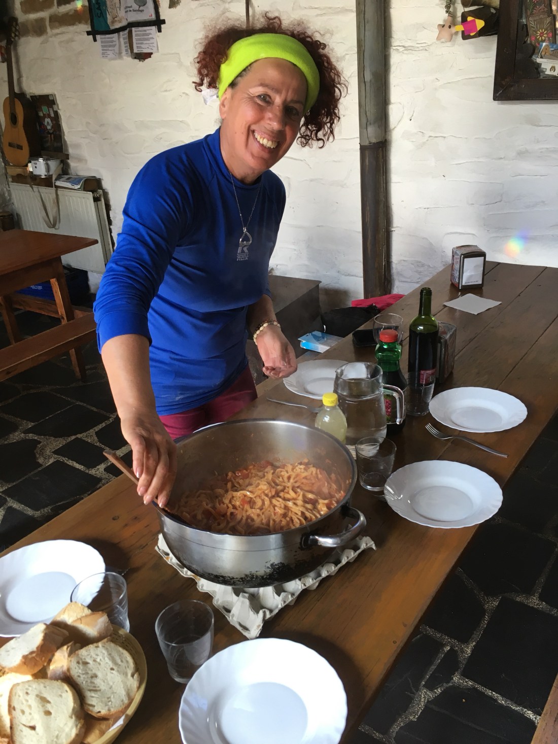 We decided to stay at the alburgue next to the church. As luck would have it, Nuncia, Giorgio’s buddy who is a professional chef in Italy, was cooking a pasta π lunch for the alburgue staff and invited us to join them.