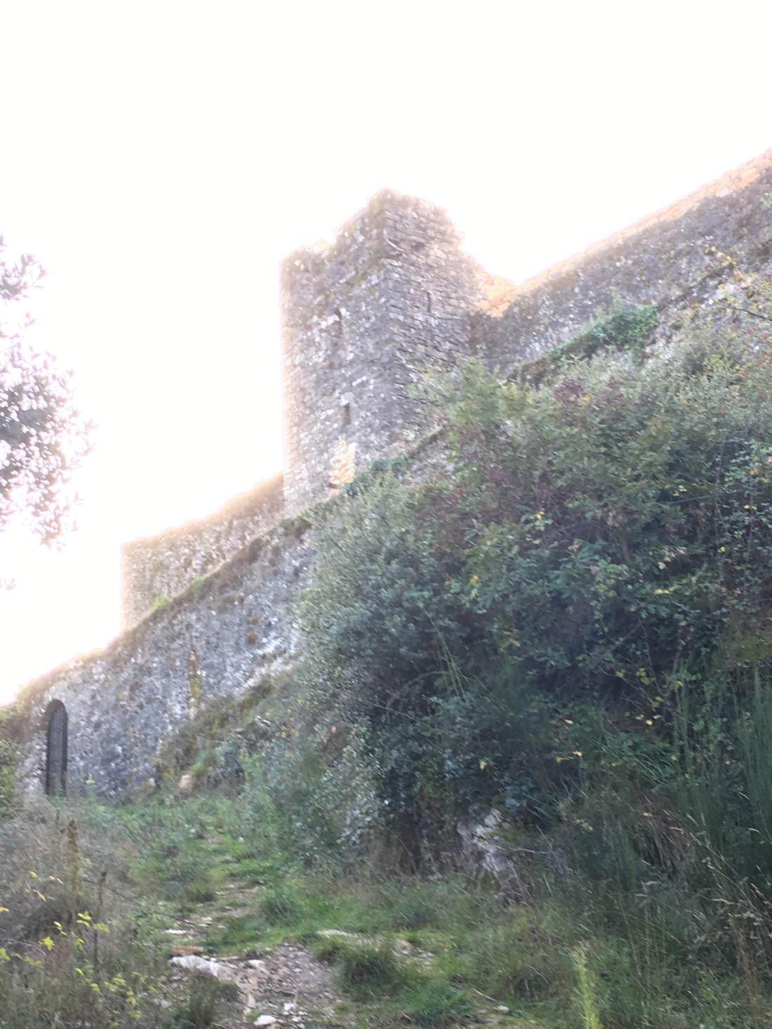 As we were getting ready to depart from the alburgue, Maria, our ever helpful hostess, informed us that the 15 kilometer, mostly uphill hike, from Vega to O’Cebreiro would be nothing more than a walk in the park for The Colorado Cowboy On The Camino and that we should walk up to the ruins of a Saracen castle that overlooks the town before we left on our journey to O’Cebreiro. I thanked her for her suggestion, got directions to this local attraction, kind of like the world’s largest ball of twine, and Giorgio and I set off to check it out. For such a noteworthy local attraction they really did a piss poor job, pardon my French, of marking the trail leading up to this castle ruin. After wandering aimlessly around a chestnut π° forest for an hour I finally found the trail and we arrived at the impressive ruins of this castle.