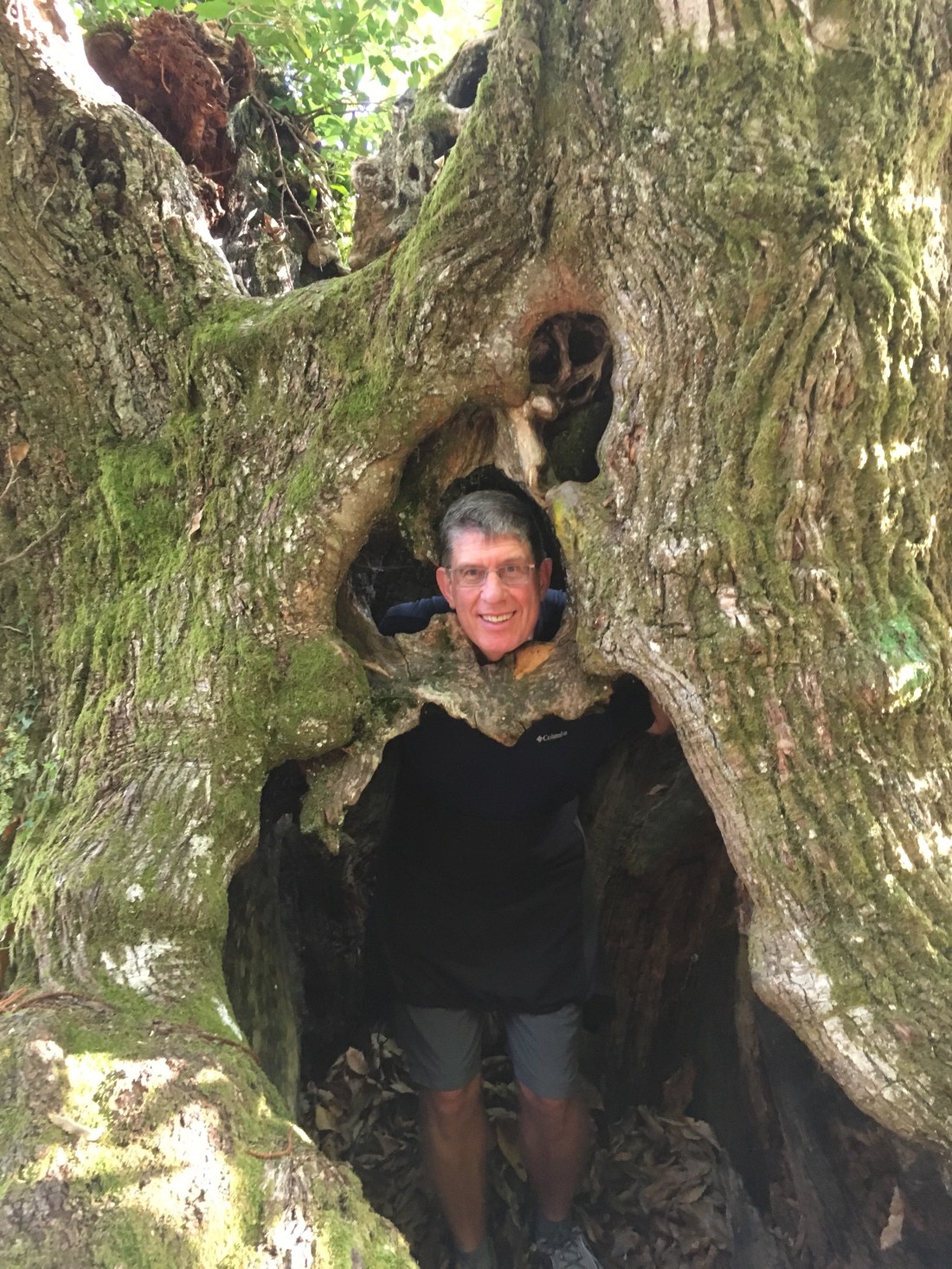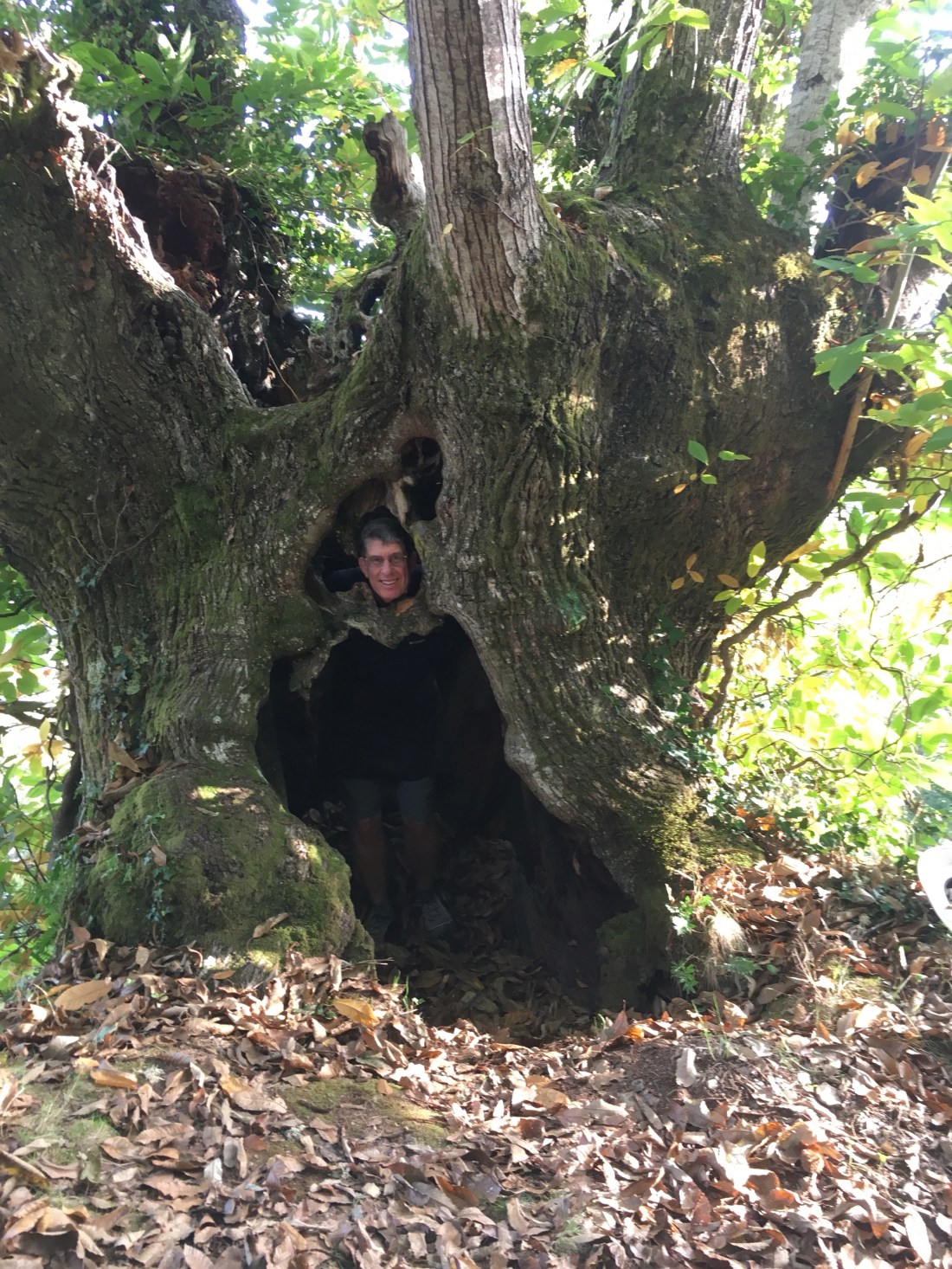 This is me clowning around inside a hollowed out cavity in a giant chestnut tree on the way down from the castle to Vega.