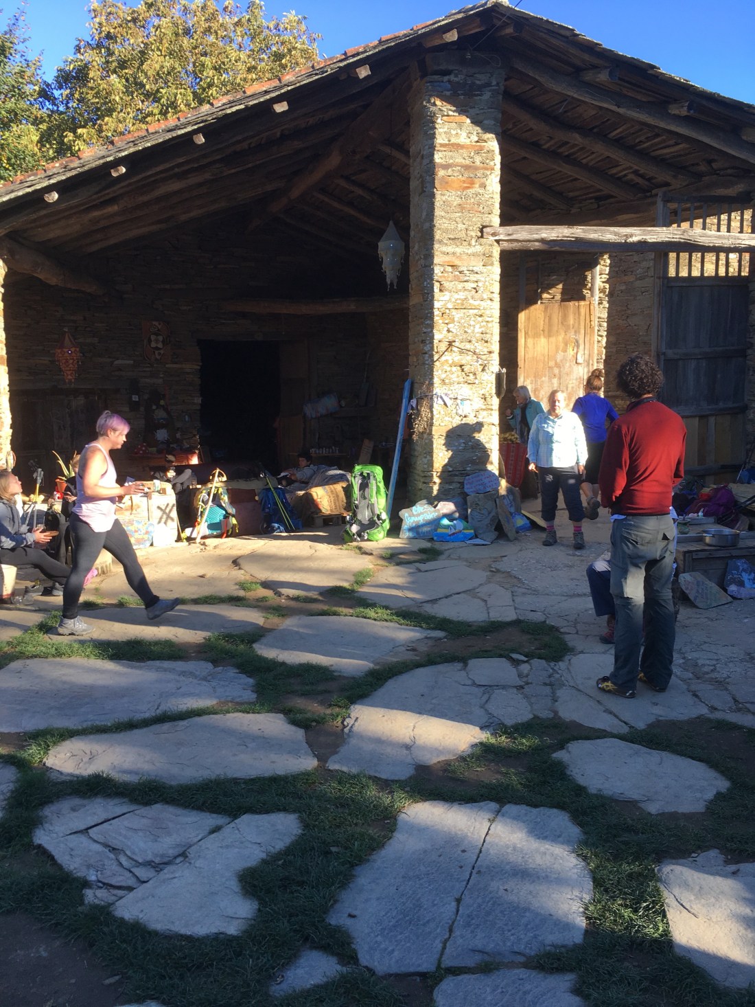 When you walk through the gate of this open air cafe one of the young men asks you if you want a cup of coffee and then he disappears into the kitchen. In a few minutes he appears with your coffee and a couple of slices of fresh baked banana bread. I don’t drink coffee but I had a double helping of banana bread, a couple of hard boiled eggs, a bowl of cereal, a couple of bananas and a couple of glasses of orange juice. I left a five euro bill in the donation box and Abe pitched a fit. He called me a cheapskate and embarrassed me into dropping another 20 euro bill into the donation box. Abe said these were four young men who were making a real difference on the Camino and that I should support what they are doing. Abe is probably right. There was some real magic at this place. The minute you walked through the gate you felt like you were at home, minus the corned beef sandwiches of course.