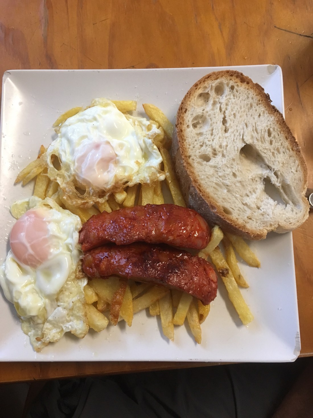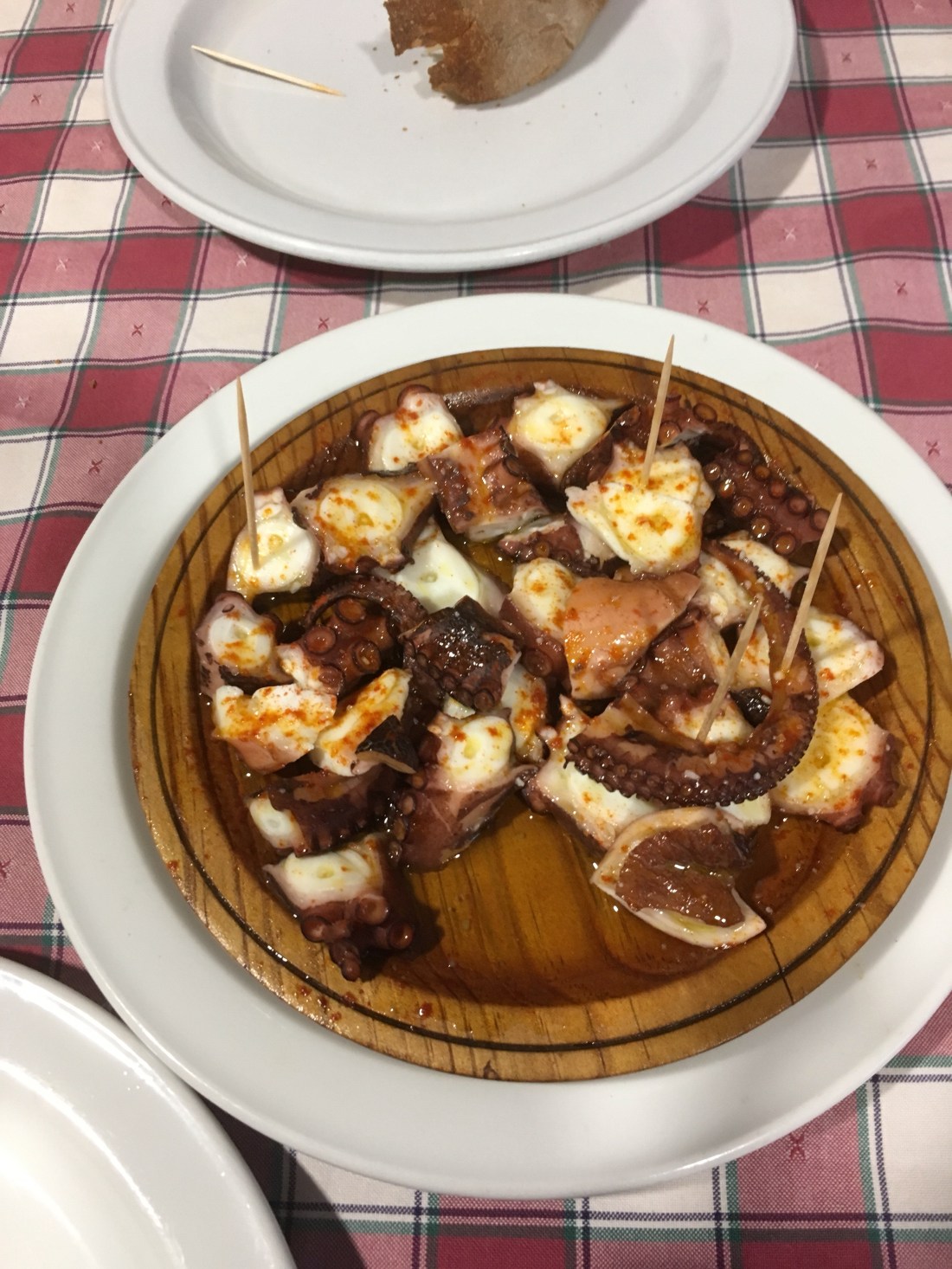 Pulpo is grilled octopus ๐. It is a Galician delicacy and I found it to be a bit chewy, but very tasty.