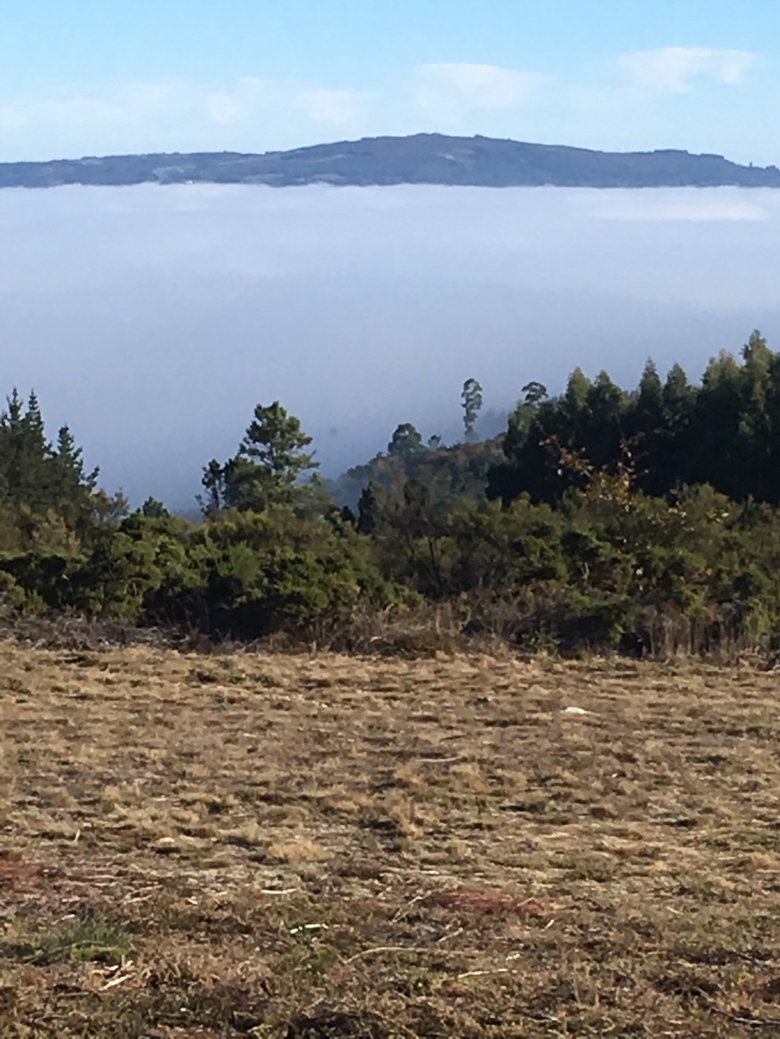 We got up and started walking at about 7:45 AM. It was pitch black and the fog was so thick you could have cut it with a knife. Up ahead of us I saw four guys walking with high powered headlamps. I left my headlamp at home to save weight in my pack. That was probably a mistake. I ran ahead to catch up with these guys and started to walk directly behind them so that I could use the light of their headlamps to illuminate the trail ahead of me and avoid any slipping, tripping or stumbling hazards. They all realized what I was doing and the guy to my left turned his headlamp to his right to illuminate my path and the guy in front of me put his headlamp on backwards to illuminate my path. These random acts of kindness on the Camino bring on tears of gratitude for the generosity of my fellow Pilgrims and gratitude for the opportunity God has given me to experience the Camino and learn from this experience.
