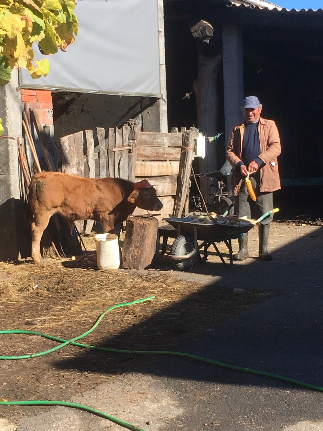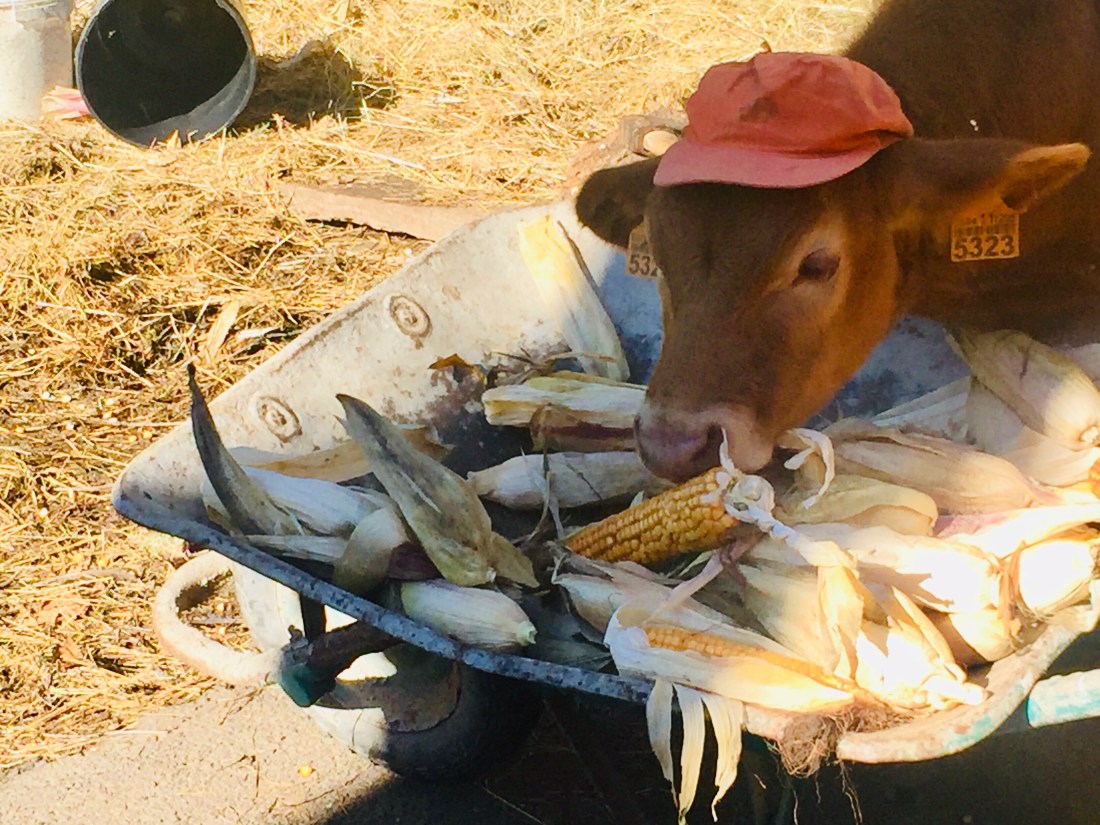 This guy was husking corn ๐ฝ and feeding it to a calf.