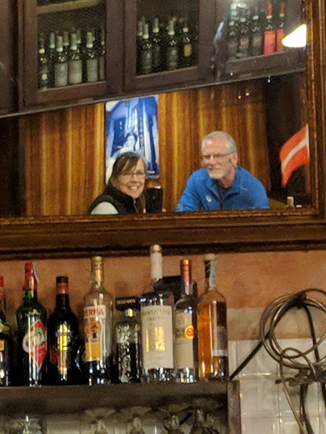 We spent the early afternoon at John and Jan’s apartment chatting about old times at the Railroad and then strolled down to a local food court where we toasted the end of the day with a glass of tasty Bordeaux. π·