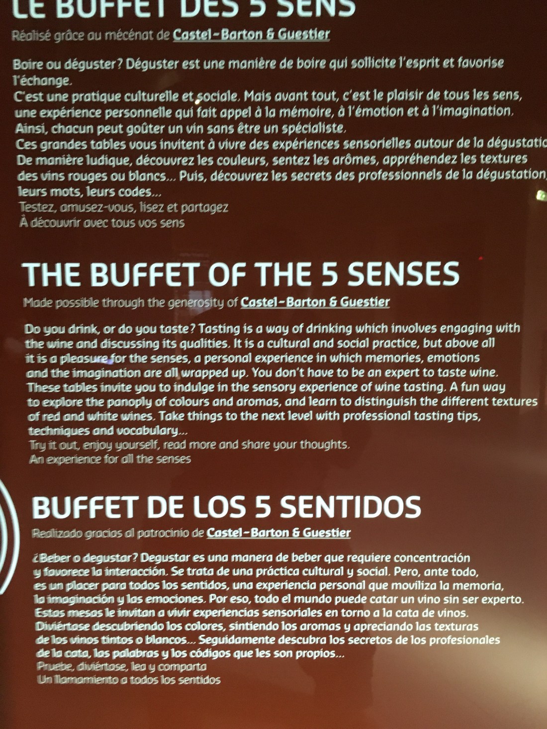 This was the “nose” and color of wine section of the museum. They had at least 50 stations where you could smell different smells such as leather, black licorice, coriander, and try to remember wines that had these smells in their “nose.” They also had a color palette to demonstrate the almost unlimited color variations of red and white wines.