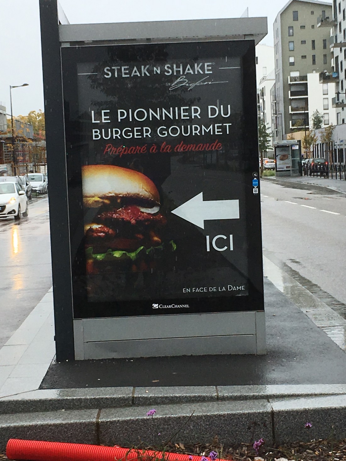 The fries at Steak N Shake are pretty good and the shakes are great, but definitely not gourmet. And most of the Frenchies who are eating at Steak N Shake in Bordeaux are sipping on a glass of fine red wine 🍷 or quaffing a cold brewski 🍺 with their burgers and fries. They are not even sampling the best part of the Steak N Shake experience, the milkshakes. If I had a few more days in Bordeaux I would protest the disingenuous advertising of Steak N Shake as a pioneer in the field of gourmet hamburgers. What a crock of French crap. And the French know better! What self respecting Frenchie is going to eat a hamburger at Steak N Shake and declare it a gourmet hamburger.