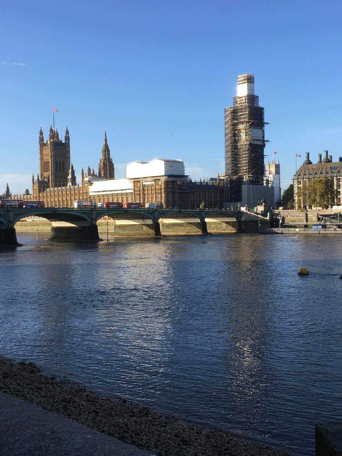 Big Ben is the tower on the right hand side of the picture. They are doing major renovations on it so all you can see is the clock face and scaffolding.