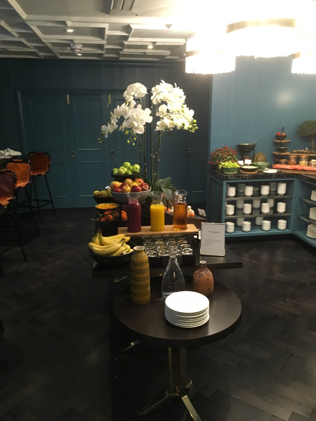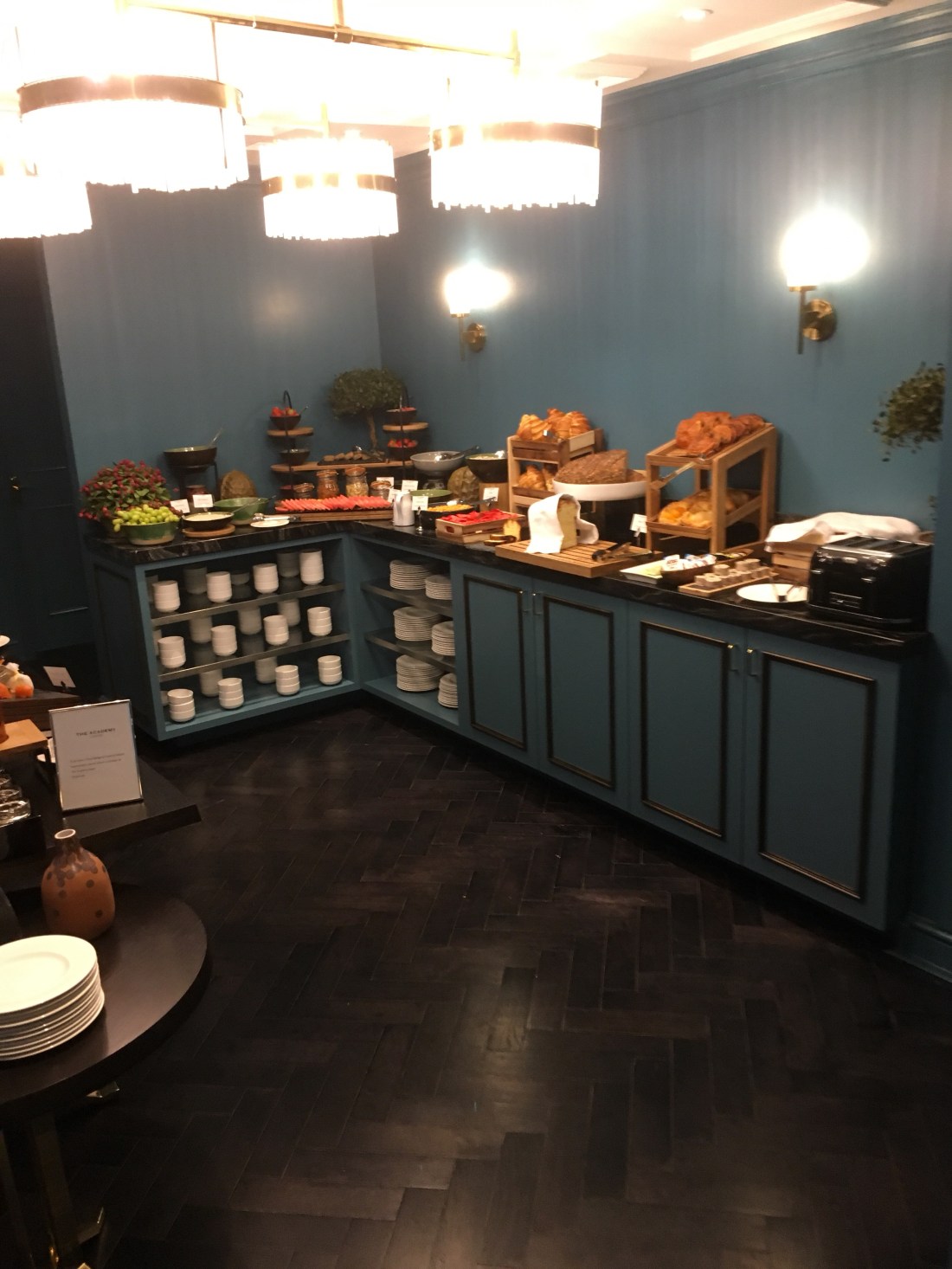 The breakfast buffet includes orange, apple and pineapple juice, coffee and tea, regular and chocolate croissants, different kinds of muffins, a wide selection of fruit, cereal and cheese and lunch meat. And I’m not talking Oscar Meyer bologna or corned beef. I’m talking thinly sliced prosciutto, Genoa salami and chorizo. No American “cheese” on the cheese platter. I’m talking Brie and Gorgonzola and a very strong Stilton cheese. I am starting to enjoy lunch meat and cheese for breakfast. Baked beans are a regular staple on an English breakfast buffet. Thank God the hotel decided to eliminate the baked beans from the buffet offerings. Eating baked beans in the morning is just asking for trouble.