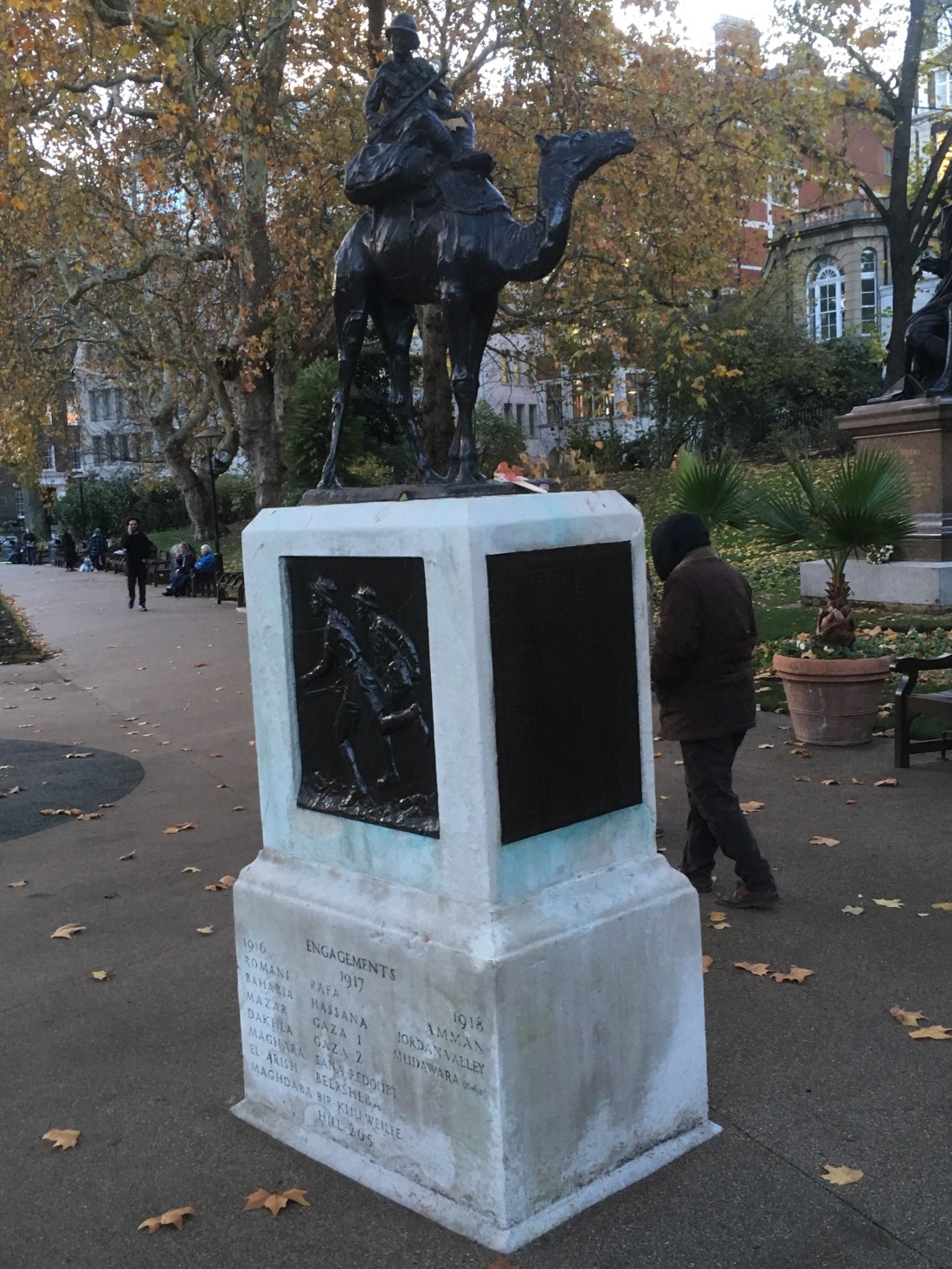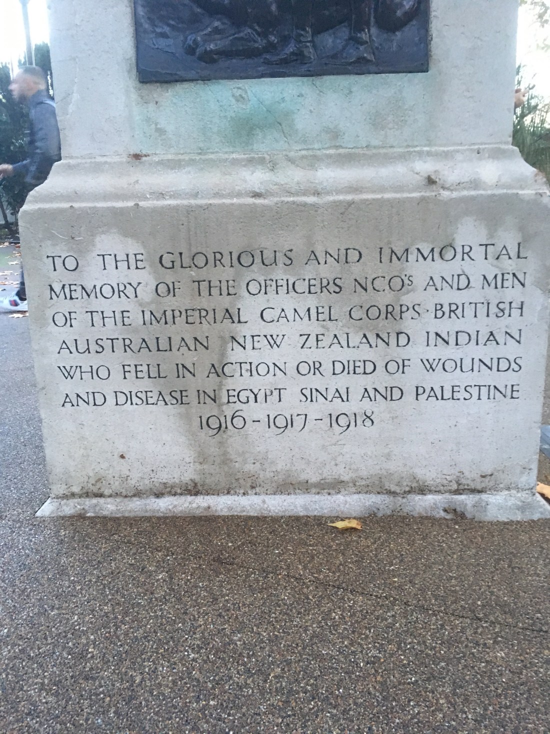 As I was walking along the Victoria Embankment on my way back to the hotel I spotted a World War I memorial to the Imperial Camel Corps.