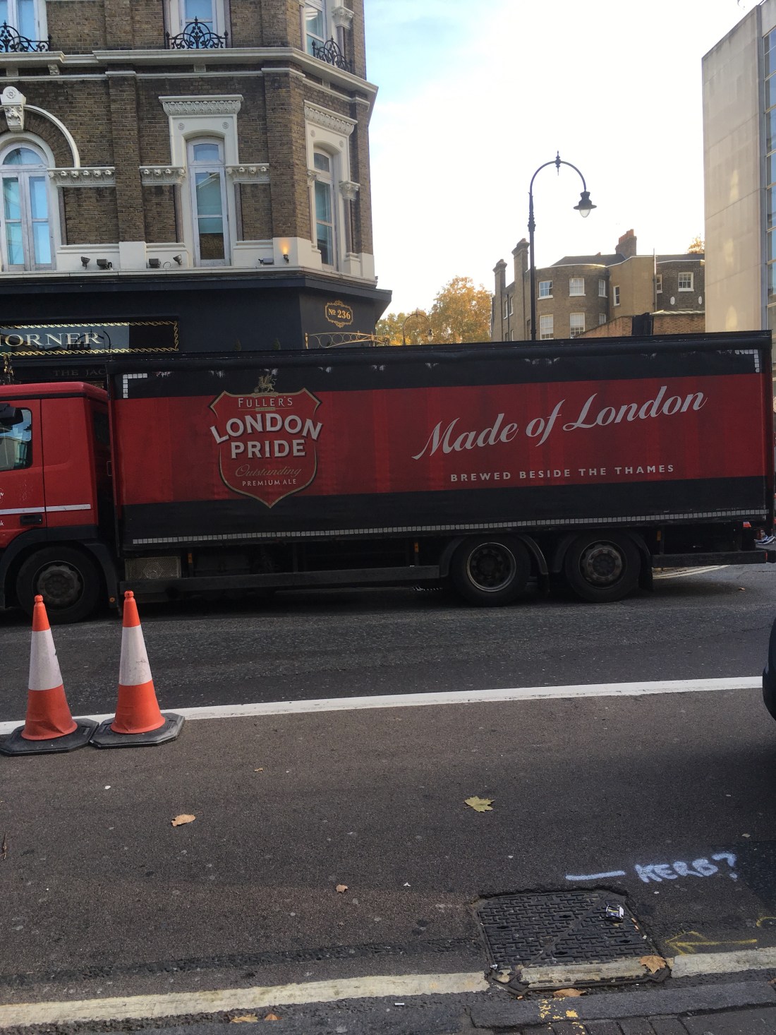 This is a delivery truck for Fuller’s London Pride Ale. They seem to be very proud of the fact that it is brewed beside the Thames.