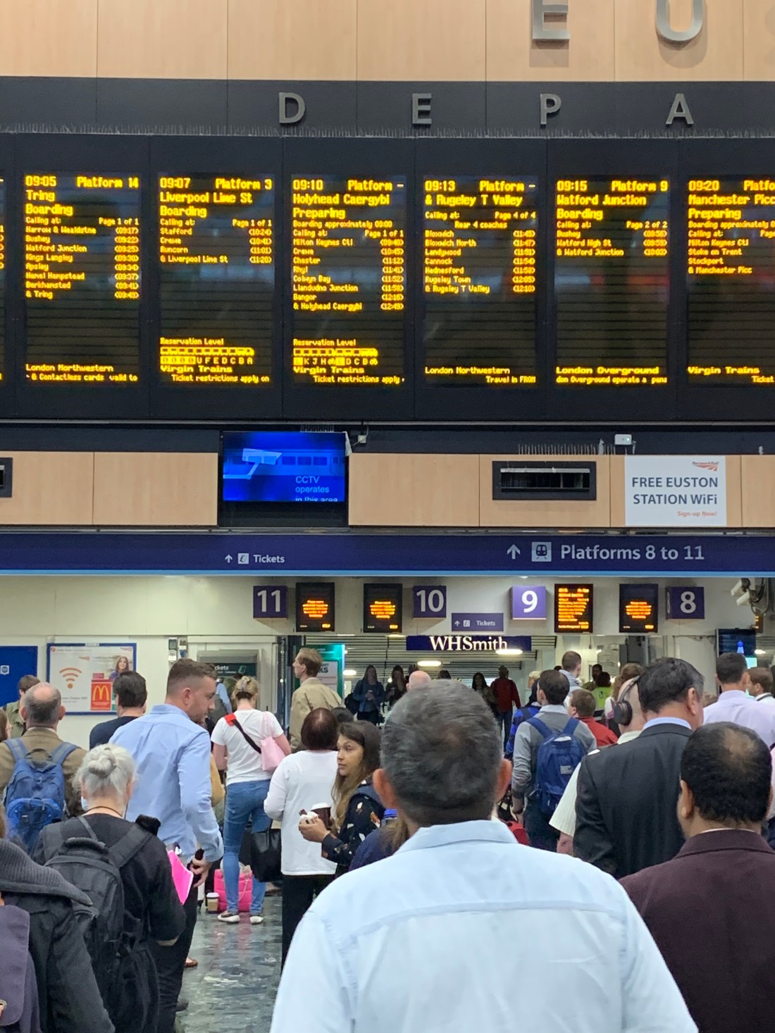 That’s not good. My train leaves from Euston Station and it looks like the entrance to Euston Station is closed due to a water main break. When I arrived at Euston Station I was relieved to find that the driveway leading to the station was flooded and closed, but I was directed to walk to the side entrance and had no problem entering the main departure/arrival hall of the train station.