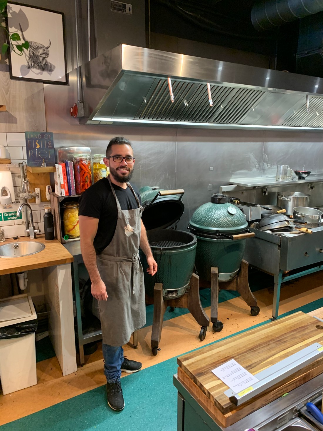 This is the restaurant’s grill master, Seamus O’Grady. I have never seen a Big Green Egg in a restaurant.