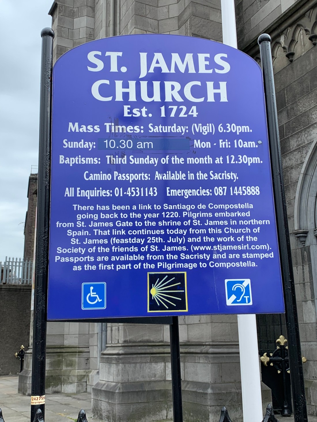 I didn’t know this but apparently the Celtic Camino starts at this church. You get your first stamp at this church and then walk down to the ferry that takes you from Dublin to A Coruna, Spain and from there you walk to Santiago. The volunteer at the pilgrim office at this church put two stamps in my pilgrim passport and wished me Buen Camino. I made the mistake of calling the route from A Coruna to Santiago the English Camino. The volunteer got really pissed, told me it was the Celtic Camino, and tried to take my pilgrim passport away from me. I had to hot foot it out of the pilgrim office to avoid losing my pilgrim passport.