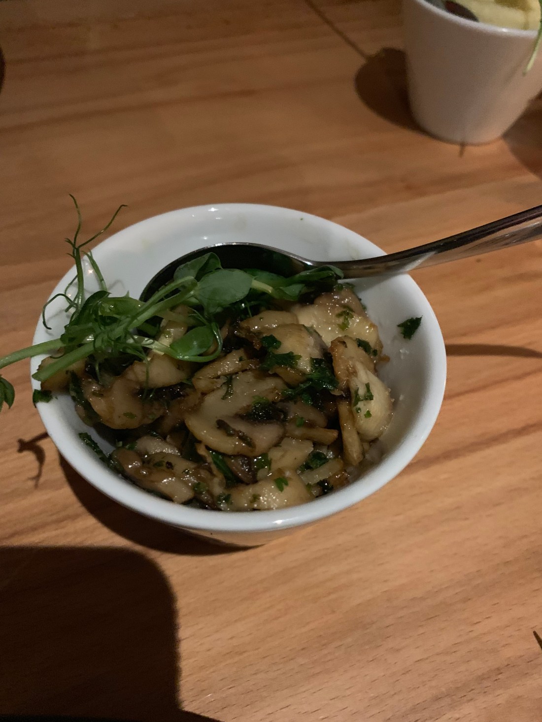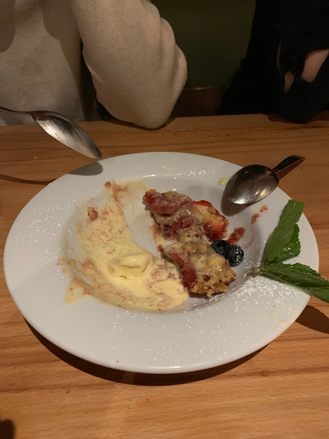 For dessert we shared a strawberry and rhubarb crumble with vanilla ice cream.