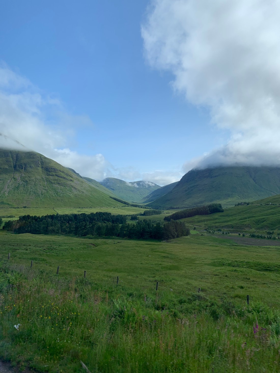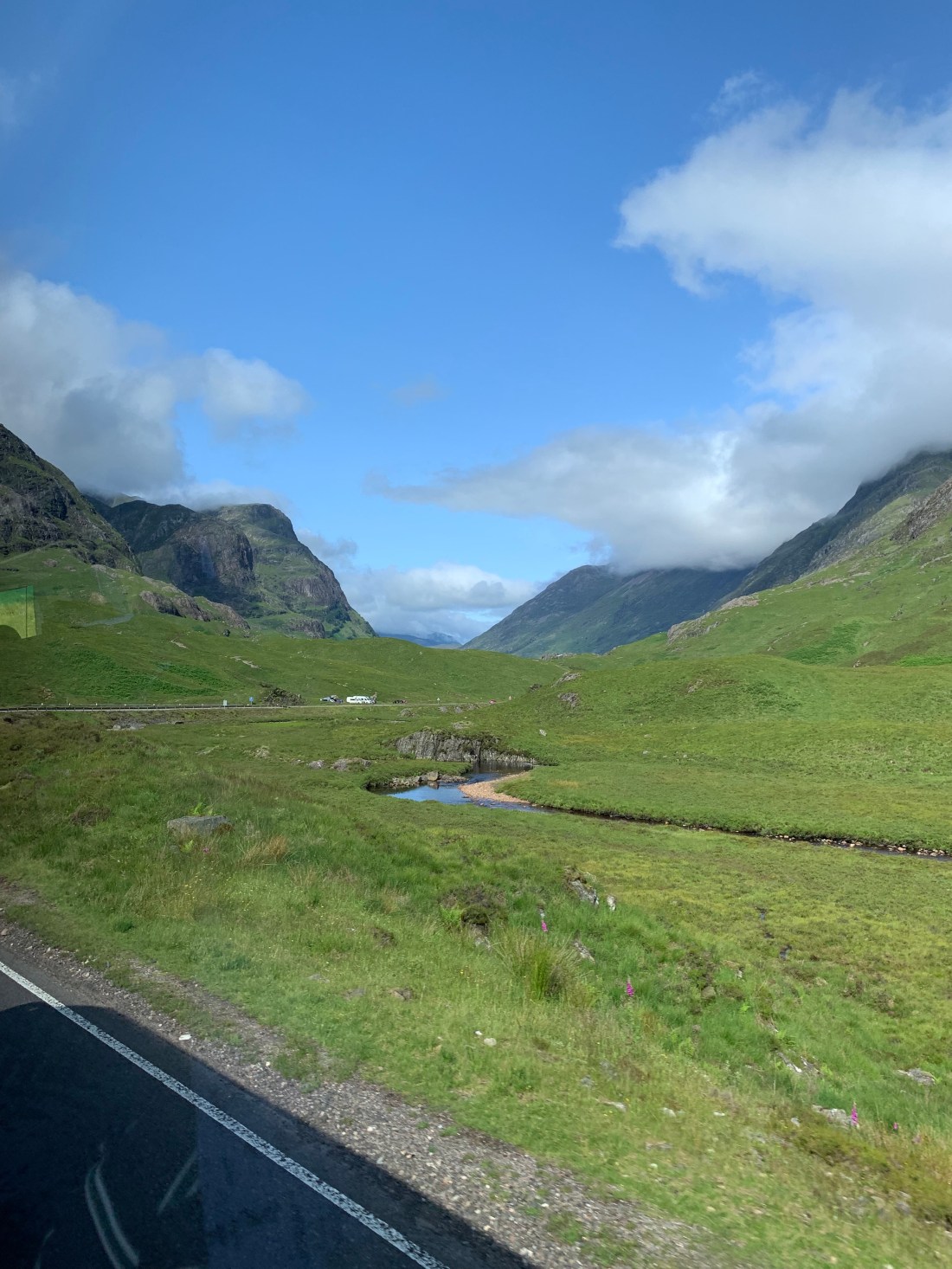 Now I never get carsick. I don’t understand the whole carsick thing. However, after ten minutes of twisty windy roads the motion of the bus, the paint thinner gin and the awful hamburger all combined to give me a new appreciation of how people feel when they say they are carsick. Although in my case I was bus sick. After an hour of this torture we made a dinner stop and I had a big ice cream cone🍦. That seemed to settle my stomach down and it was on to Glasgow.
