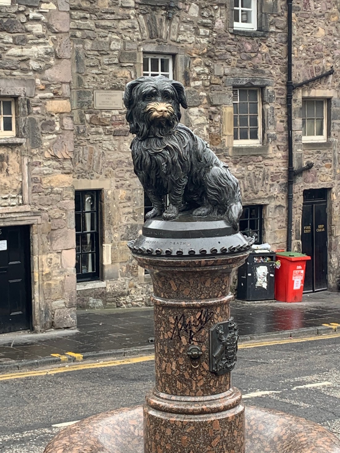 After I wolfed down my tasty lunch I continued my perambulation to the hotel. On the way I spied Greyfriars Bobby. It is an Edinburgh tradition to rub Bobby’s nose for good luck.