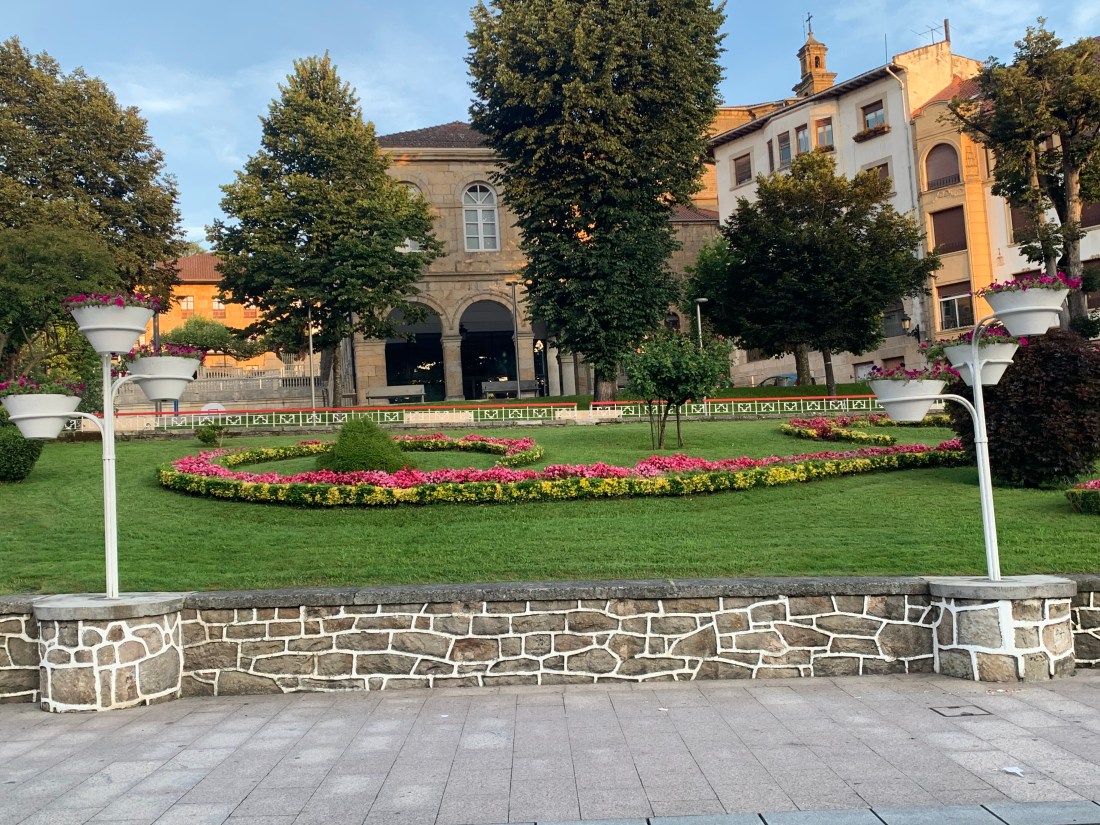 Beautiful flower garden in the main plaza in Guernica.