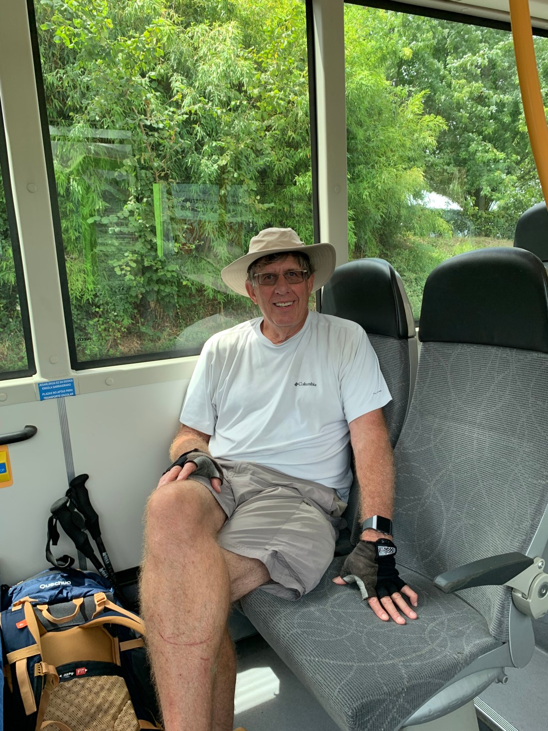 This is your humble correspondent relaxing on the comfortable air conditioned bus from Larrabetzu to Bilboa.