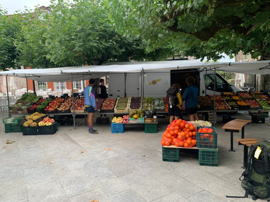 A farmers market in the square in Sobrado. I bought two apples here, one for breakfast to go along with my croissant and orange juice and one for the road. Most of the apples in Galicia are cider apples but these are delicious Granny Smith apples.