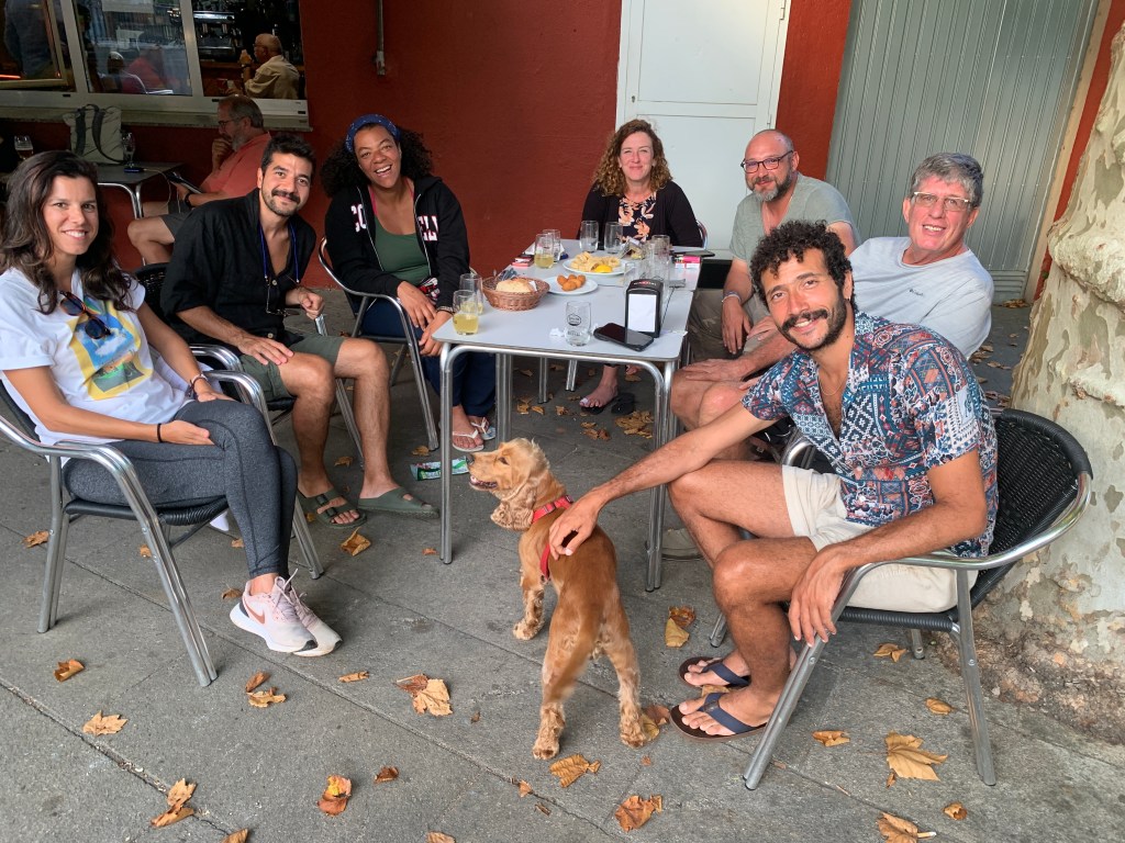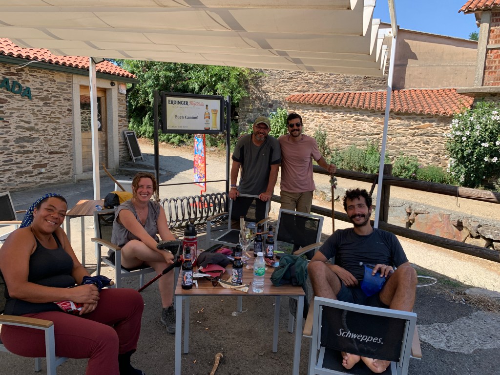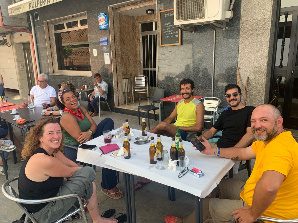 This is the group having the best tortilla on the Camino for lunch. Of course, we washed down the tortilla with Radler.