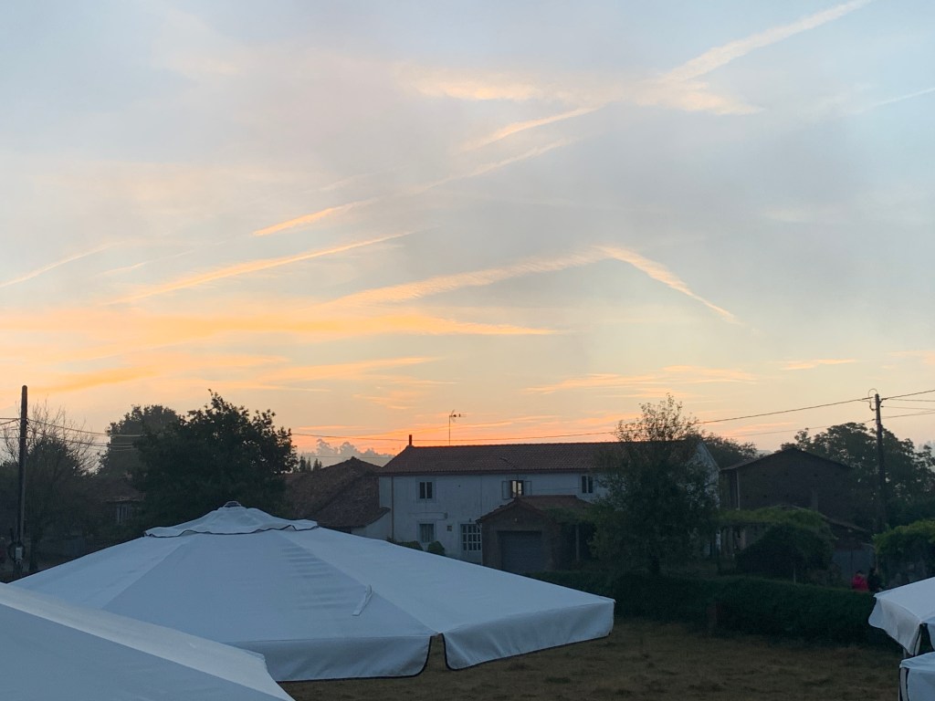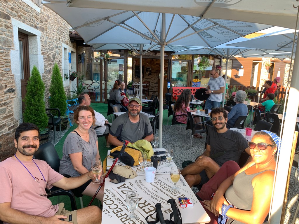 That’s it for this evening. We walked 38,000 steps, 28 kilometers and climbed the equivalent of 38 flights of stairs. Tomorrow we walk about 12 kilometers into Santiago.