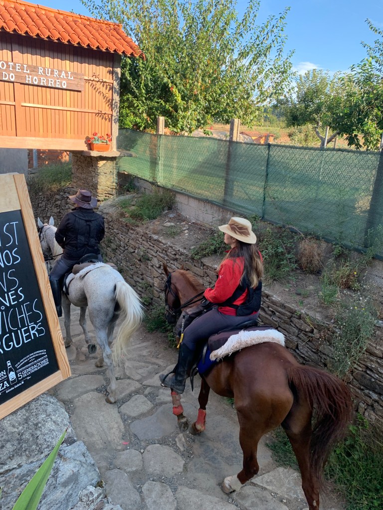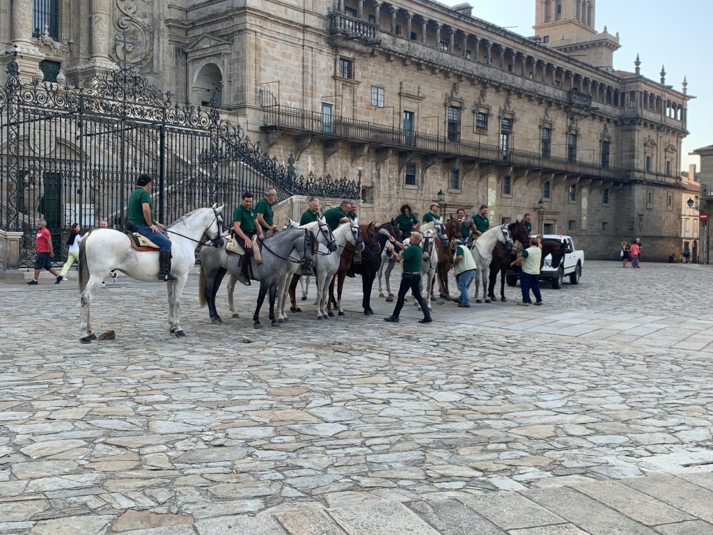 This is the group of equestrian pilgrims that have been leaving the Way littered with horse apples since we joined the Camino Frances at Arzua.