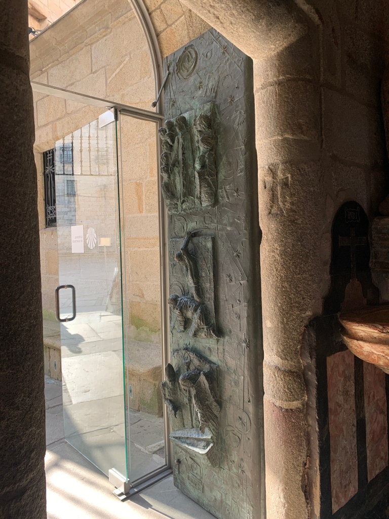 The Door of Forgiveness is only open during a Holy Year, that is a year when the feast day of Saint James falls on a Sunday. The Holy Year was last year but the Pope extended it through 2022 due to COVID. According to the Pope if you walk the Camino and walk through the Door of Forgiveness and go to confession and pray at the tomb of Saint James all your past sins will be forgiven and your time in purgatory for those past sins will be remitted.
