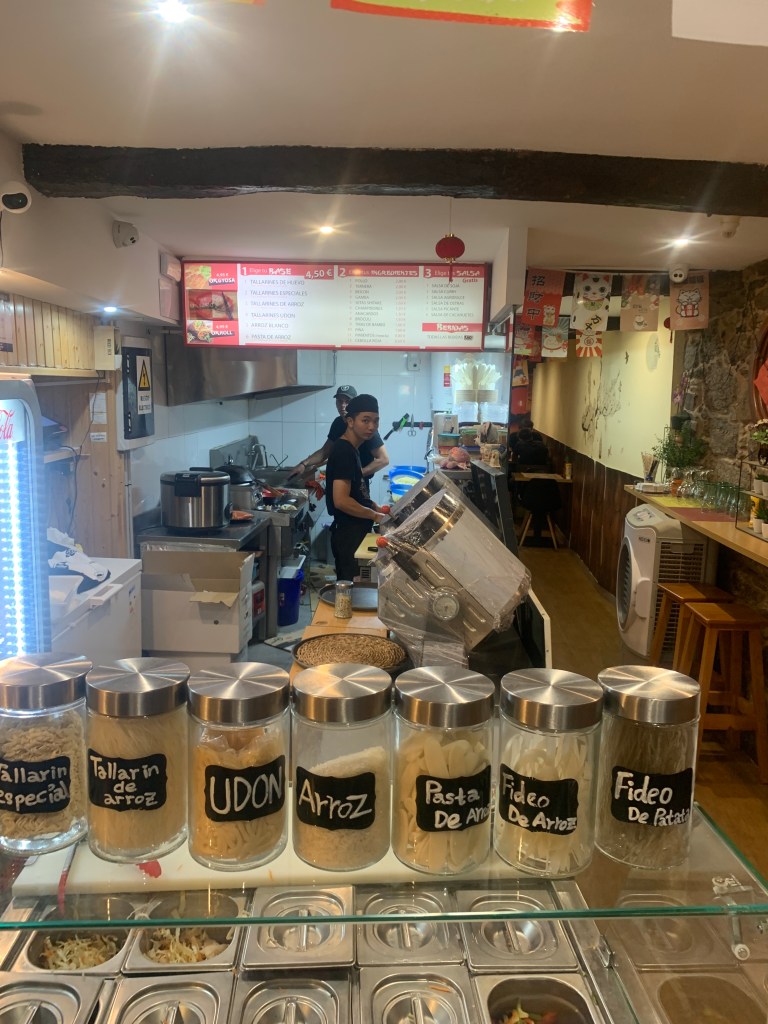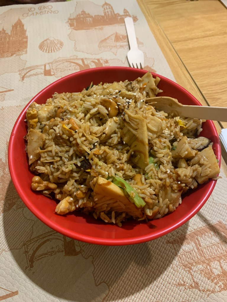 Our stay in Santiago is over. We git out of the alburgue at about 10:30 and walked into Old Town Santiago on our way to the bus station. We waited around for an hour until the stir fry joint opened so we could get lunch before we got on the bus.