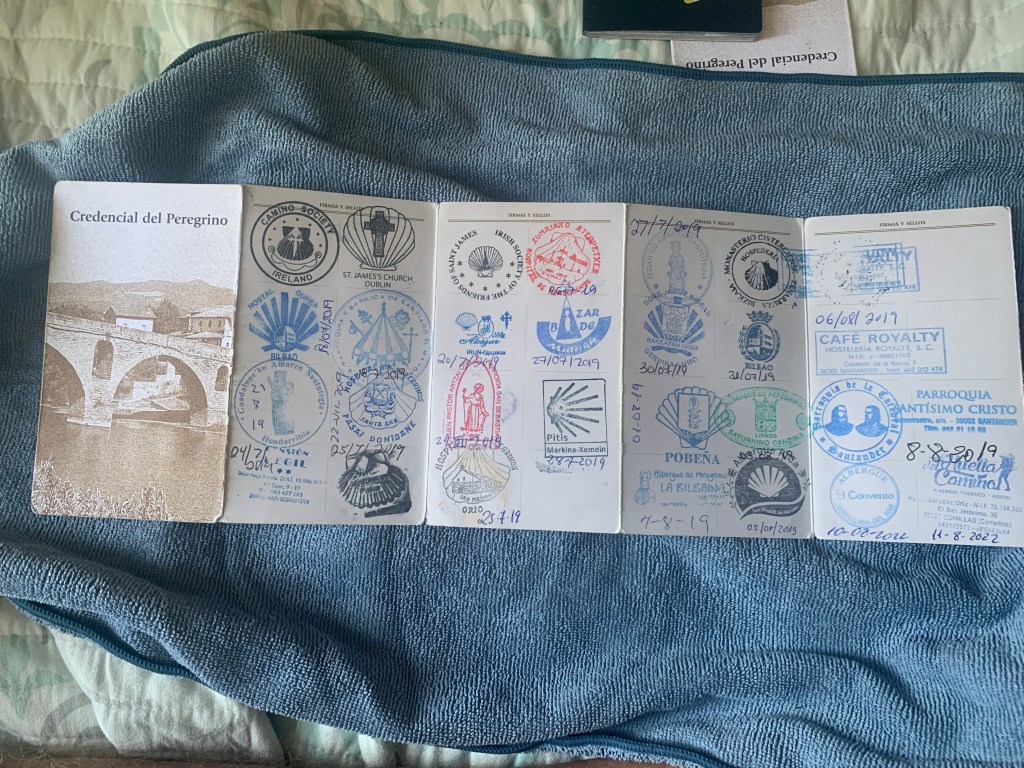 My Certificate of Distance shows that I walked 828 kilometers. I started in Irun at the beginning of the Camino Del Norte in July of 2019 and got as far as Santander. I was in Santander on August 8, 2019 when I got word that Anna, my sister, had passed away after courageously battling Non Hodgkins Lymphoma for two years. I immediately decided to pause my Camino Del Norte and fly back to Springfield, Illinois to be with my family to celebrate Anna’s life and mourn her passing. I had planned on resuming my journey in 2020 but COVID intervened and I was not able to even think about resuming my journey on the Norte until 2022.