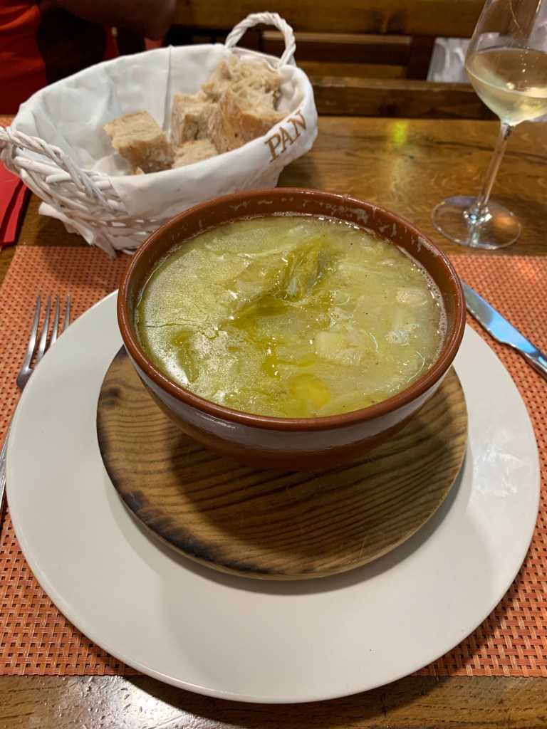 Our first course was Caldo Gallego. This is a delicious local soup full of meat and cabbage and potatoes and beans.