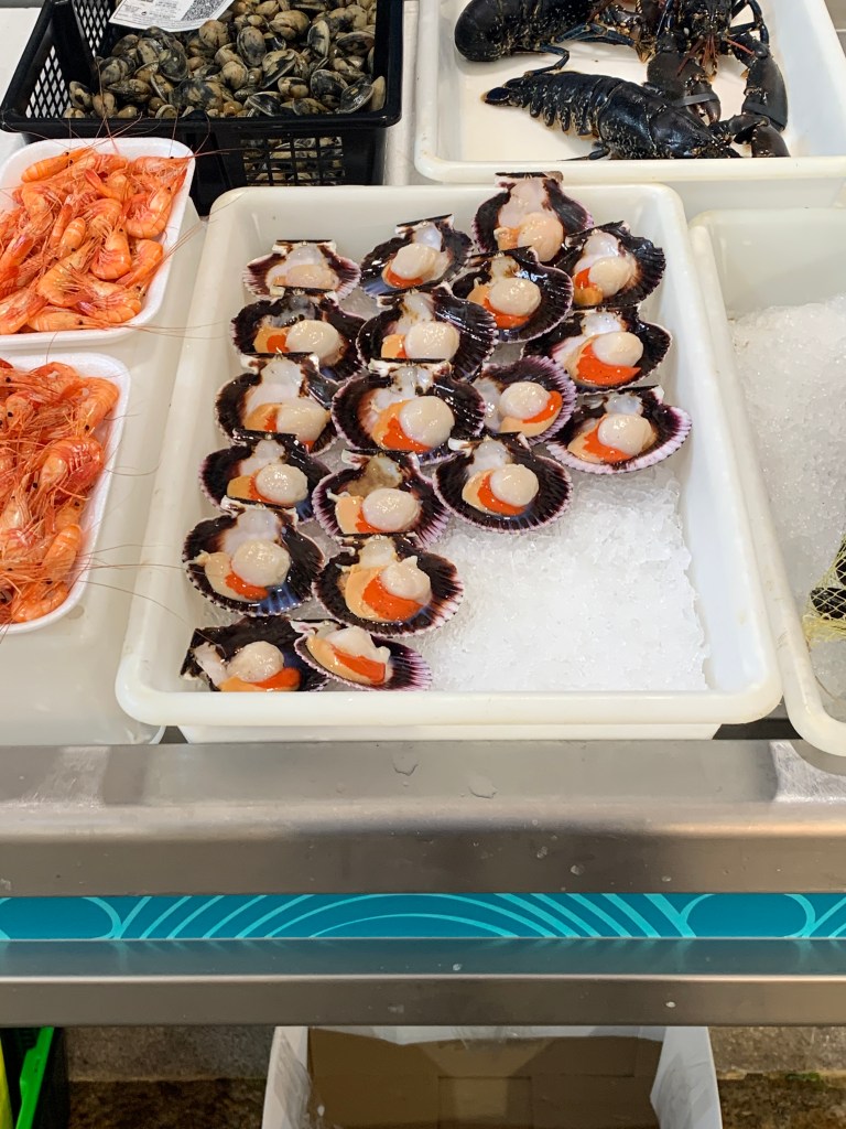 The sandwich shop was located in a market like the one in Santiago. Six long stalls all under one roof selling almost anything edible. All local and all fresh and all delicious.