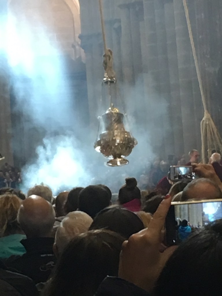 As an added bonus they did swing the Botofumiero. In the old days the Botofumiero incense burner was used to get the stink of thousands of unwashed Pilgrims out of the Cathedral. The Botofumiero swing always moves me deeply. I am so grateful to have had an opportunity to be part of this 1200 year tradition of pilgrimage to Santiago de Compostela.