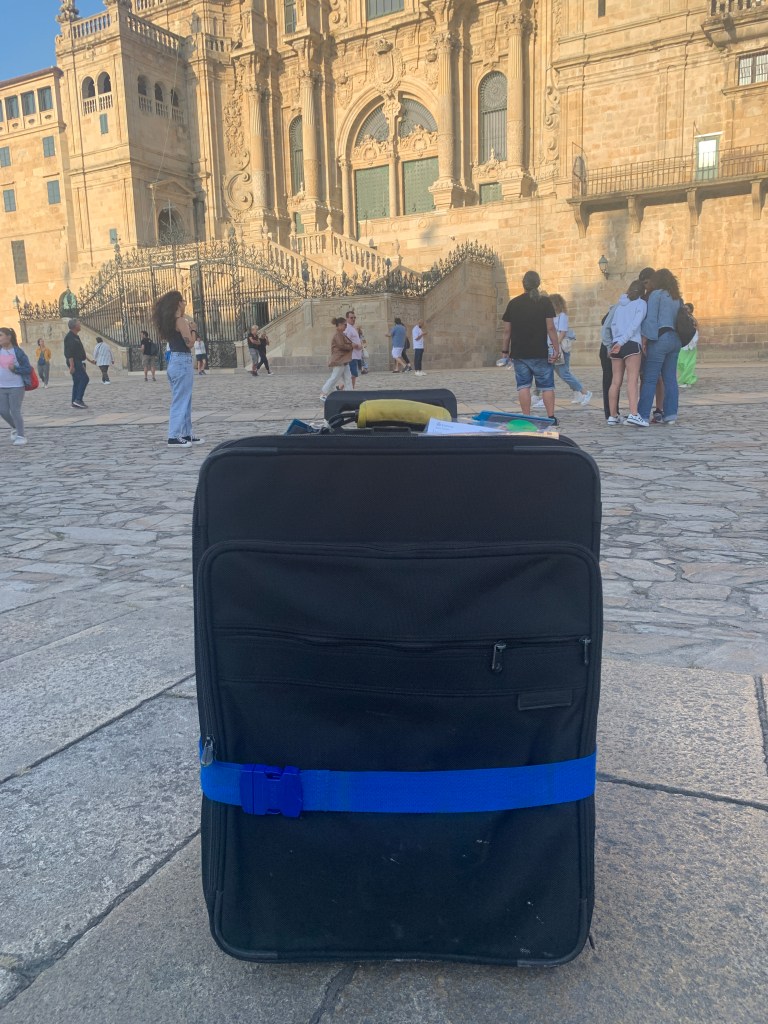 What is this? It is the suitcase I mailed from the post office in Santander to the post office in Santiago. The post office in Santiago is about a block from the Cathedral. I showed them my paperwork and my passport and within a matter of minutes I walked out with my suitcase and my clean non hiking clothes. I love it when a plan works.