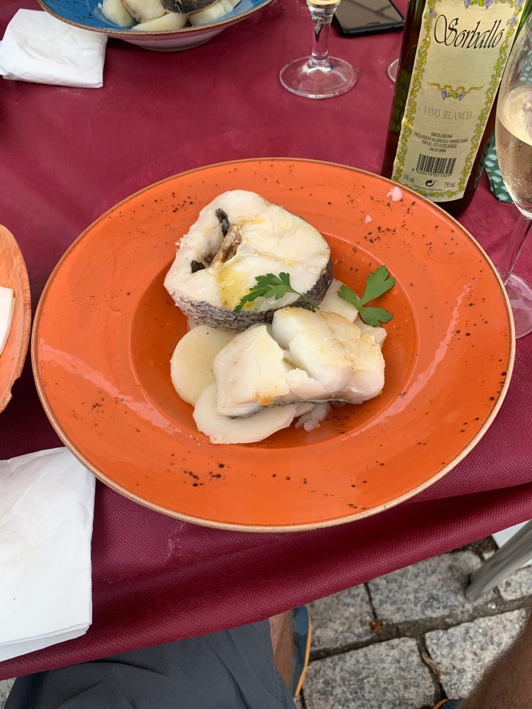 Second course, cod and potatoes. Very good.