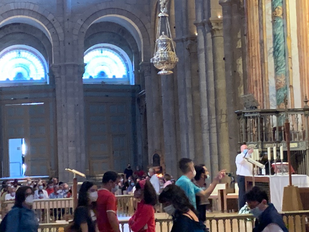 After we finished at the Pilgrim Office we hustled over to the Cathedral to attend the 9:30 Pilgrim Mass. We got a special blessing from the bishop but the Botofumiero did not swing.