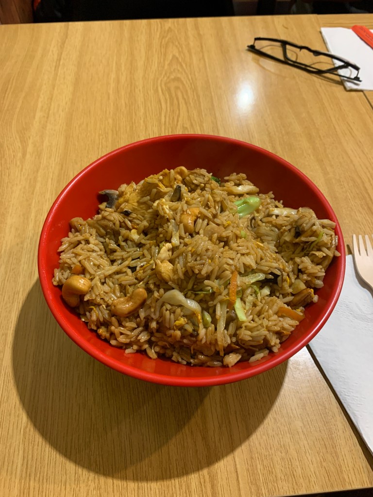 This is a great wok place where you pick out your choice of noodles and ingredients and sauce and in no time they stir fry it and it arrives at your table in a big bowl of deliciousness.