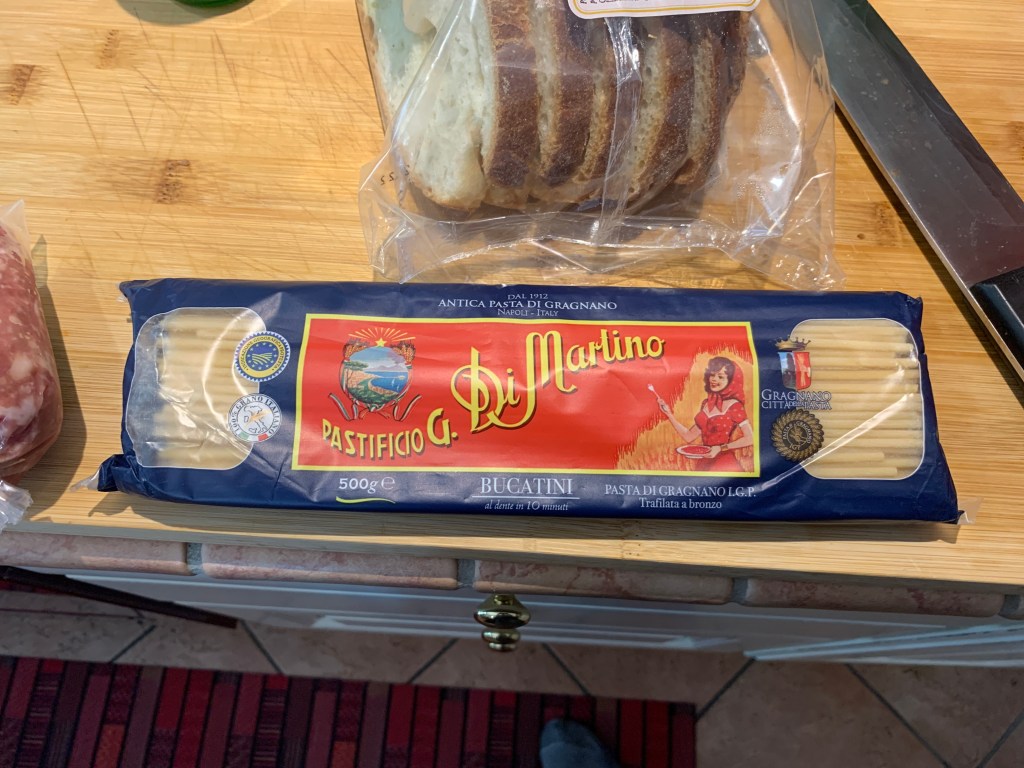 According to Marco, this is the Cadillac of pasta. He used it to make the carbonara and it is really good.