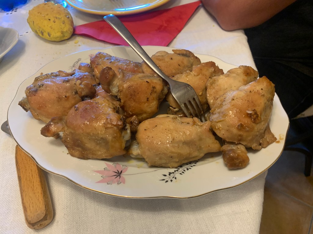 Then we had roasted chicken thighs. These are Cosetta’s specialty and they were really good.