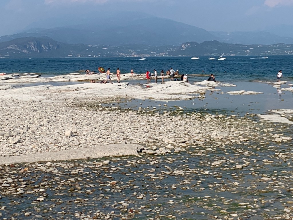 After lunch we took a 45 minute drive up to Lake Garda. This is the largest lake in Italy. You can see the effect of the severe drought and hot spell that Italy is suffering through. The water level is down significantly.